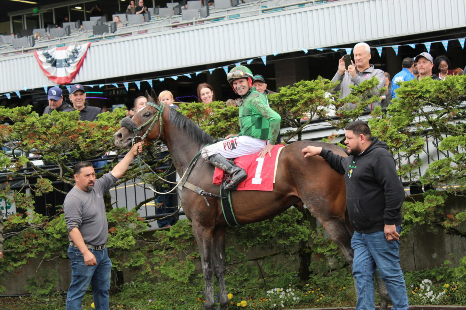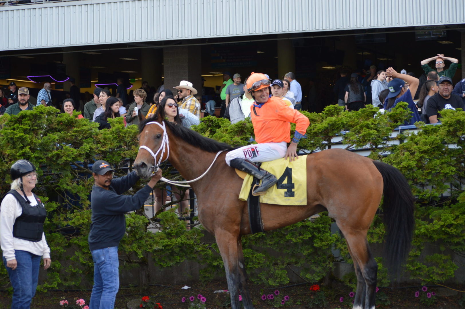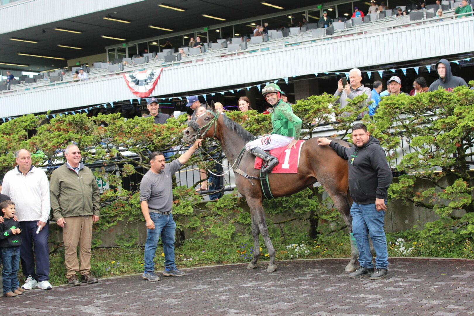 Zunino was interviewed by Emerald Downs’ Joe Withee and took congratualtions from his fellow riders, trainers, owners, valets and fans all around the winners circle.