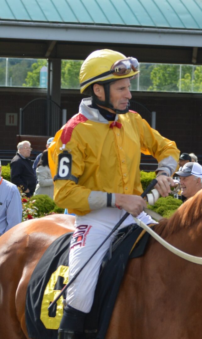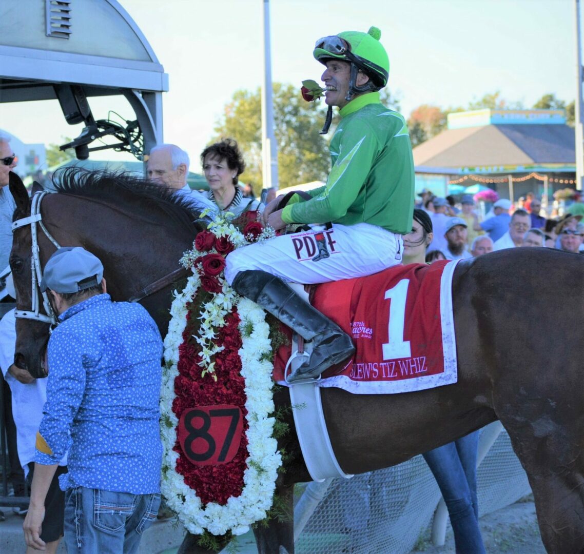 That left 1 ride for the day for Zunino. His long career was coming to an end on Sunday, September 15 with a final riders up on A Skip in the Park sent out by trainer Tom Wenzel. Zunino no question wanted his final ride to be for Wenzel who has believed in Zunino for years and quickly determined that Zunino was the perfect fit for Slew’s Tiz Whiz.