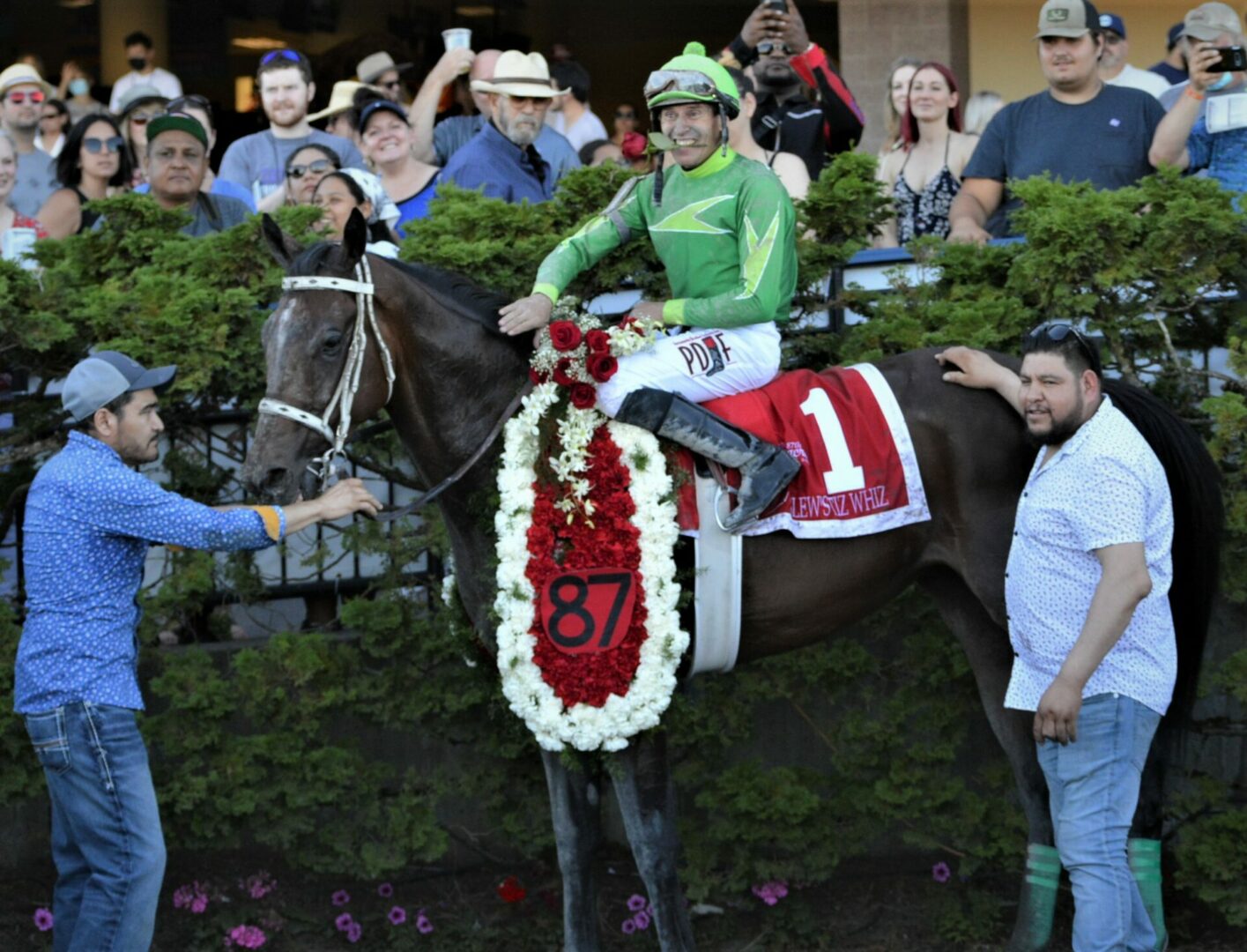 When Jose and Skip returned to the Winner’s Circle the crowd was energized and emotions were high because even though it wasn’t Slew, ending your career with a win in the style you were known for and the style you won your biggest race of your career with was indeed a fairytale finish. And with the final snap of the camera from track photographer Reed Palmer, and the hugging and tears it finally settled in and Jose smiled to the crowd, waved and thanked everyone ending his career like he did it every day he saddled up with class, respect, dignity and always a smile on his face.