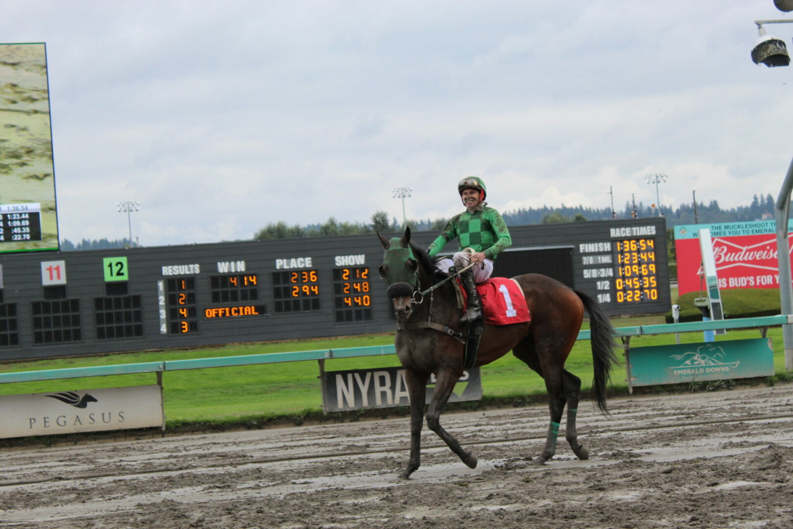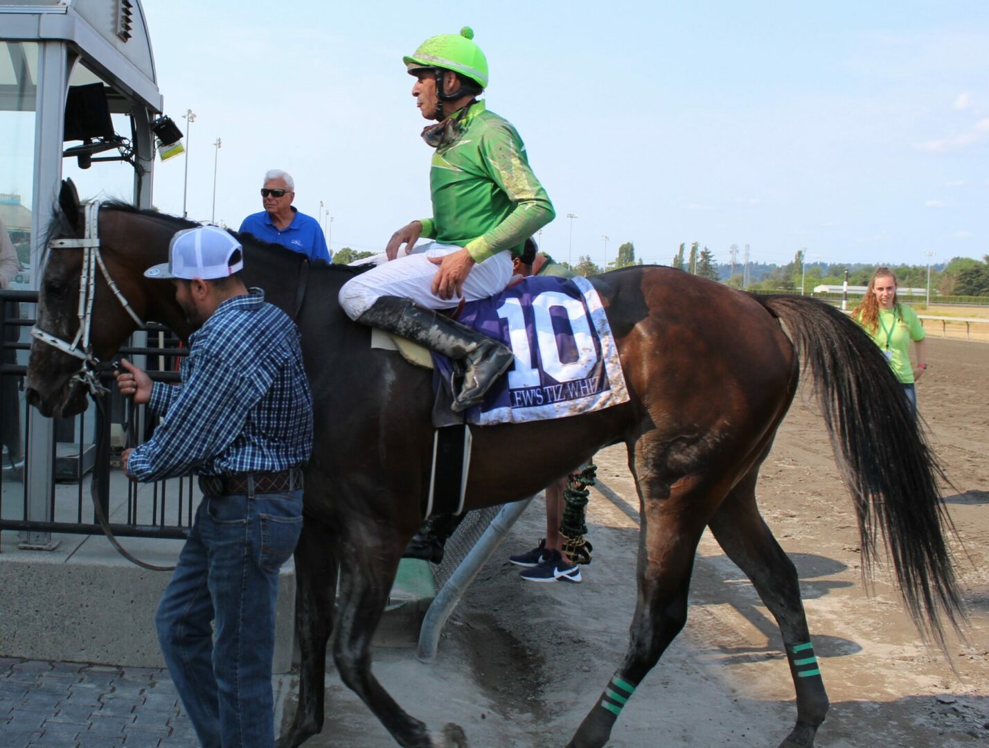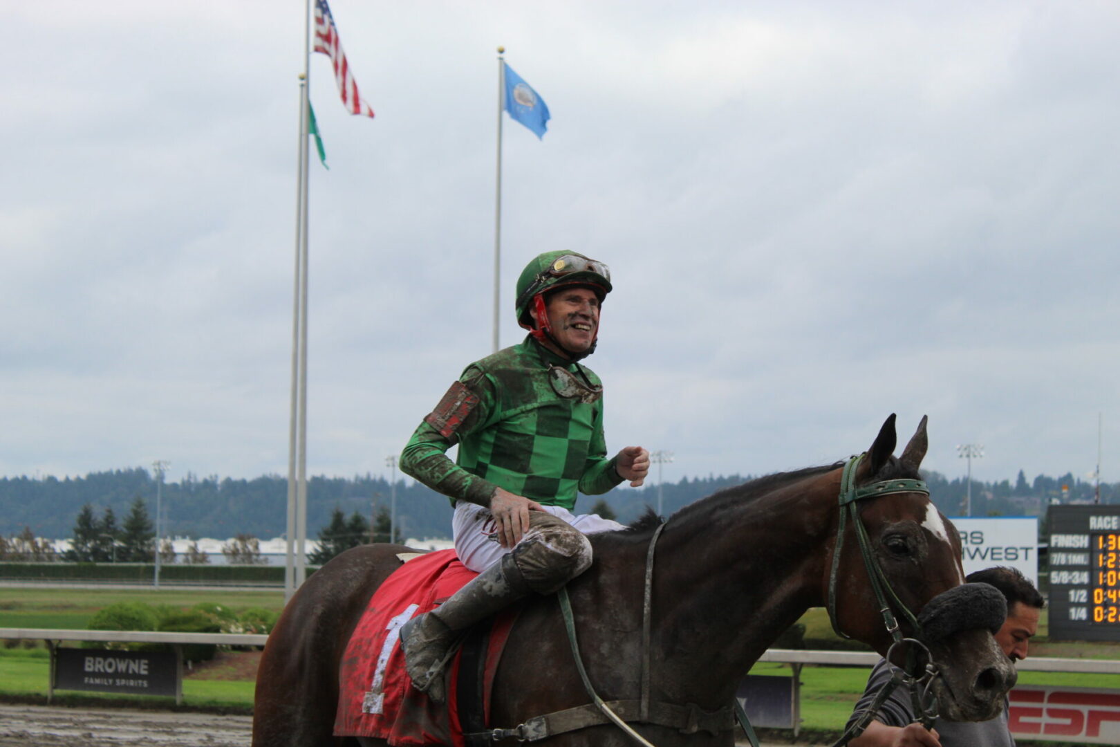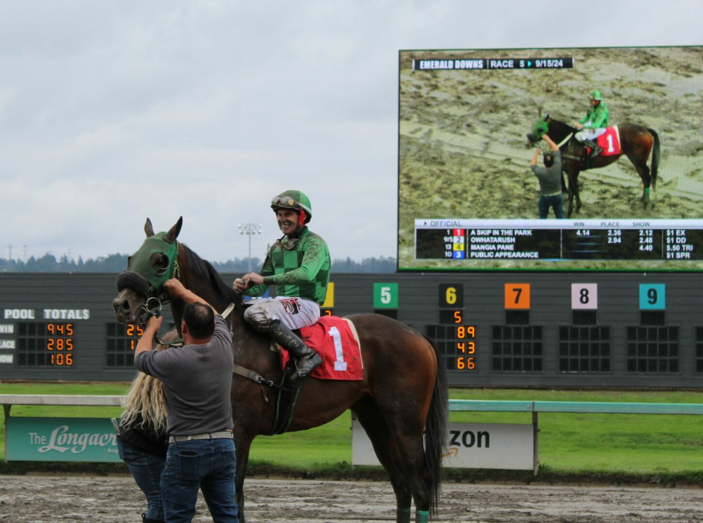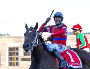 (Auburn, WA) Closing day was set to be the dream come true ending to a great career for local fan favorite and journeyman Jose Zunino. The ultimate dream of Zunino getting to ride the horse of his career 1 more time and hopefully to a win didn’t happen because of the track conditions forced the scratch of 2022 Longacres Mile Champion Slew’s Tiz Whiz who Zunino rode to victory in that race.