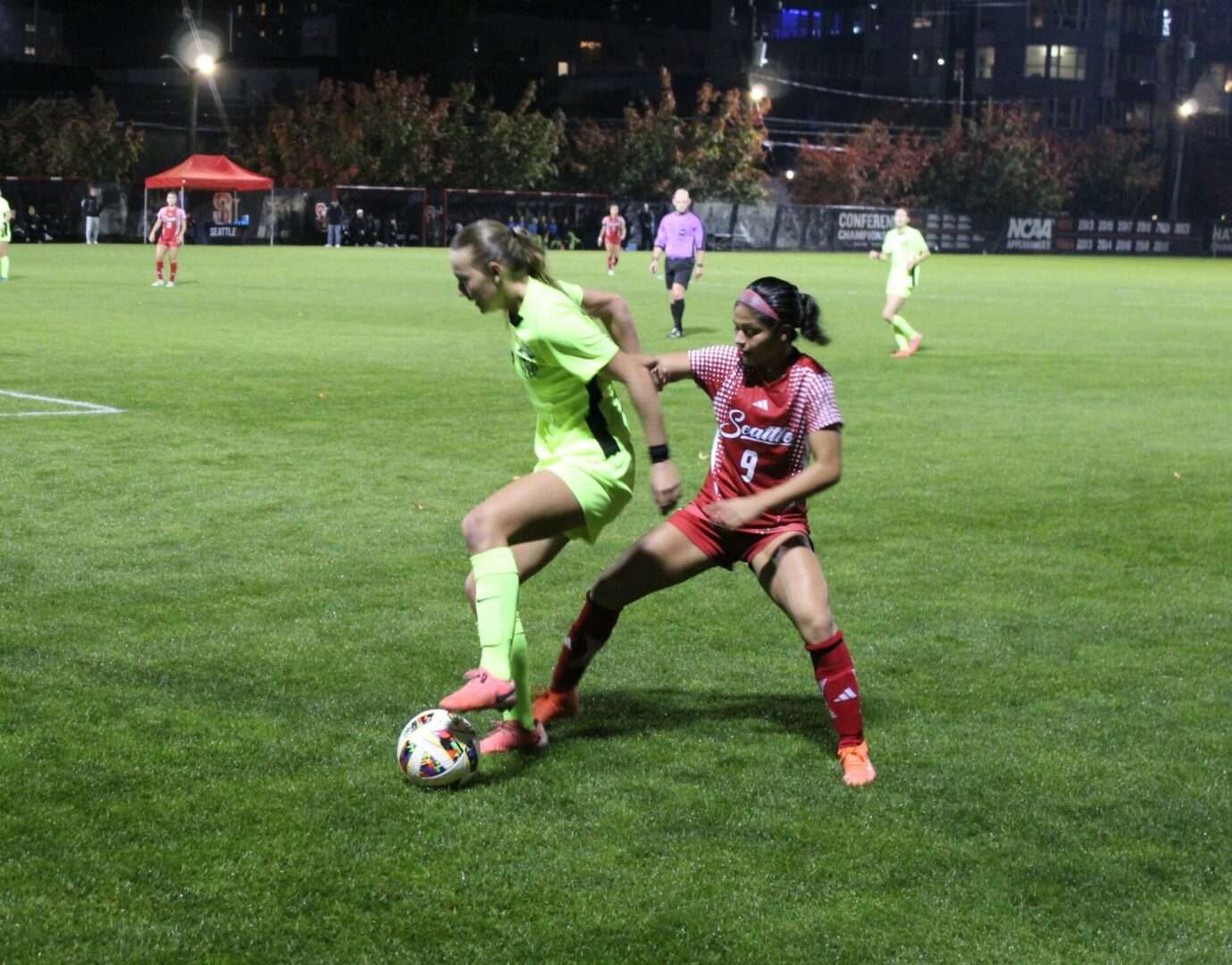 The Saturday night game was the final conference game of the season and one last chance to improve position in the NCAA’s Western Athletic Conference. Seattle U was tied for 2nd trailing the team they were hosting Utah Valley University who had clinched the Championship coming in. The Redhawks had to win and then get some help to clinch 2nd so they had something to play for when the match kicked off.