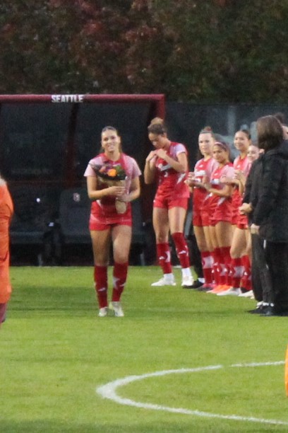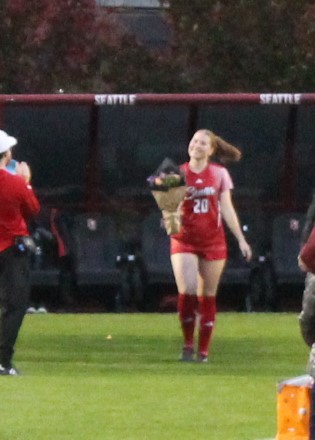 It was Senior night and those that were honored prior to the game included team captain Kait Raffensperger from Redmond, Washington, Shaye Douglas from Corona, California, Jourdyn Curan from Ewa Beach, Hawaii, Olivia Isakson from Sedro-Woolley, Washington, Nina Prusa from Cupertino, California, Savannah Singleton from Dacula, Georgia and Daniella Smathers from Prosper, Texas.