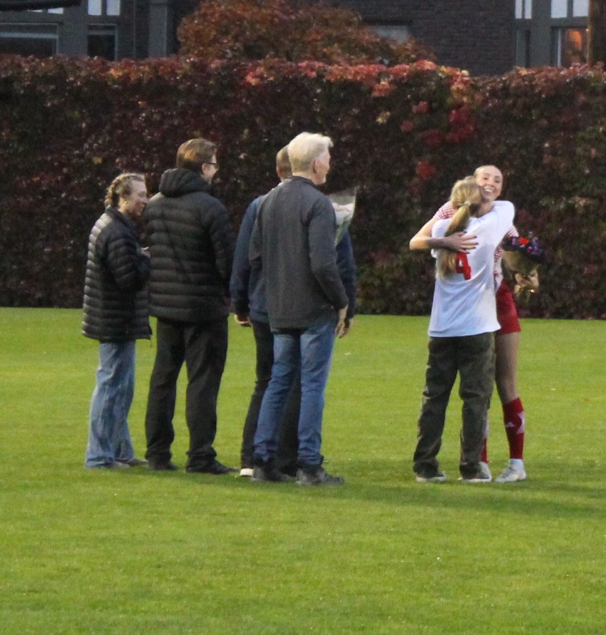 After the seniors were introduced and the match got underway it didn’t take long for the Redhawks to flex those home field muscles when Hallie Bergford scored in the 4th minute on an assist from Bella Bonnett. This was Bergford’s 2nd goal of the season and it couldn’t have come at a better time leading off senior night.