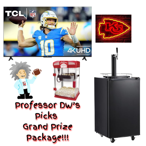 For the second time in the last three weeks, Jeff takes home the win and also blocks another spot in the postseason tournament. Jeff has finished in the top two in three different weeks and occupies three of the spots for the postseason tournament. Skip also finished in the top two for the third time on the year, so no new entrants qualified for the postseason tournament this week. Just 12 opportunities remain to gain entry into the postseason tournament with 18 entrants already in. The winner of the postseason tournament will earn a nice prize package including a 55″ smart TV, a kegorator, a theater Popcorn machine and a neon sign of your favorite football team.