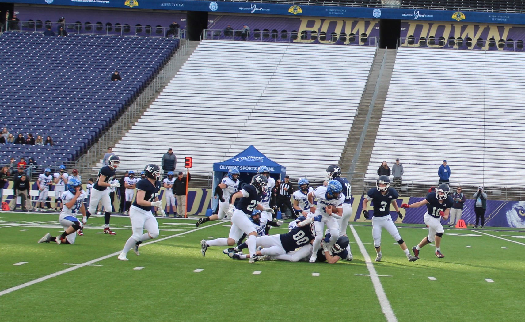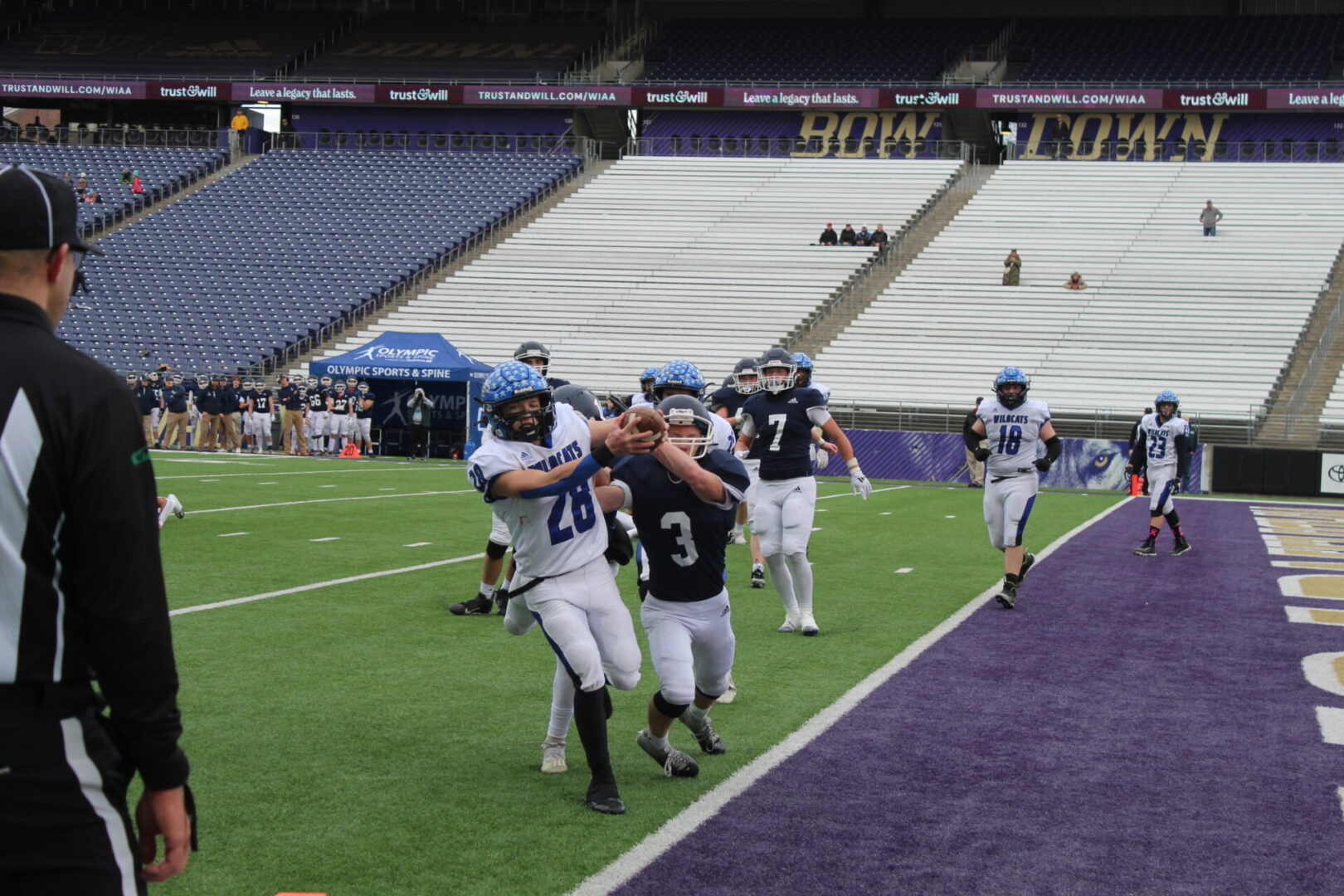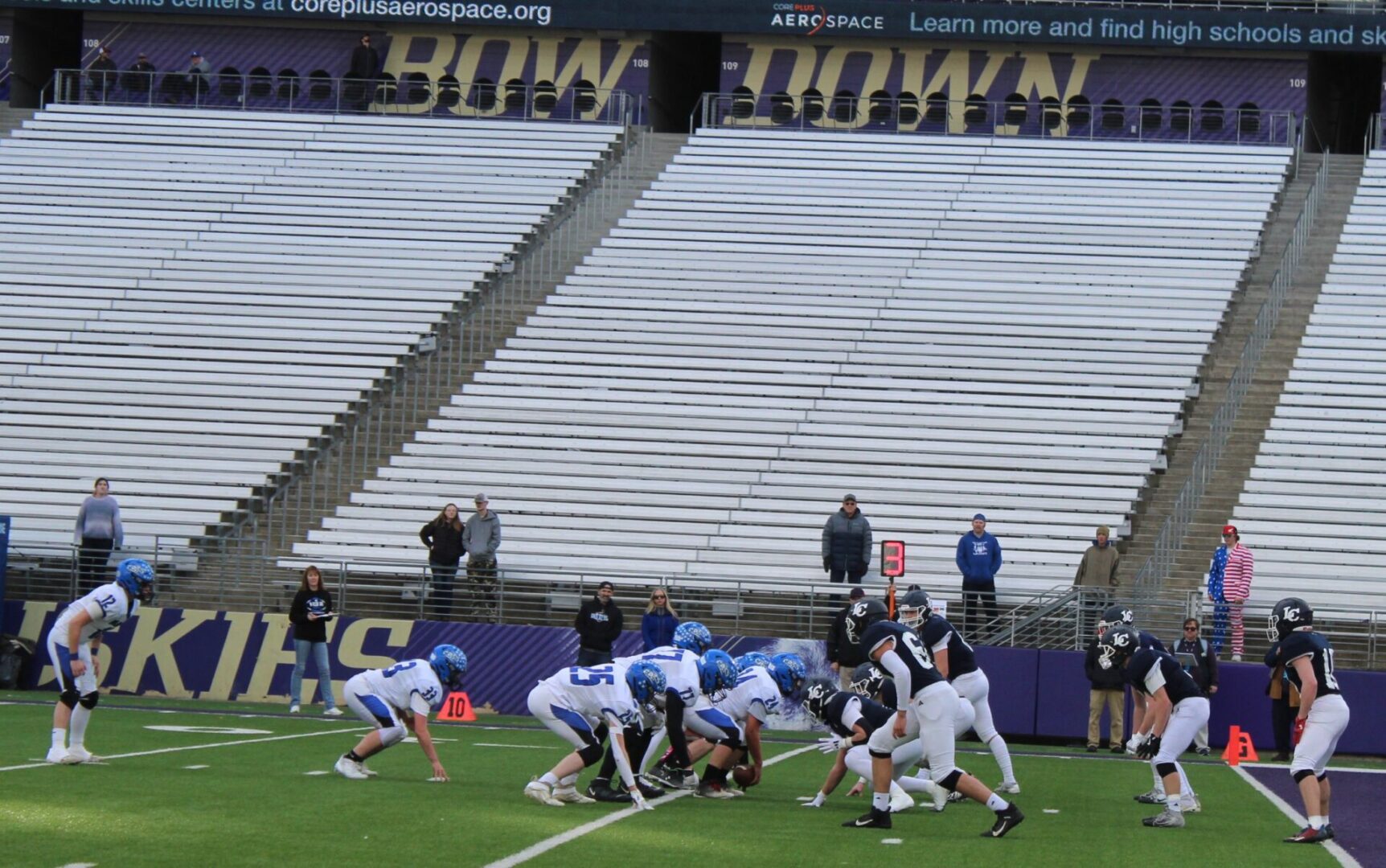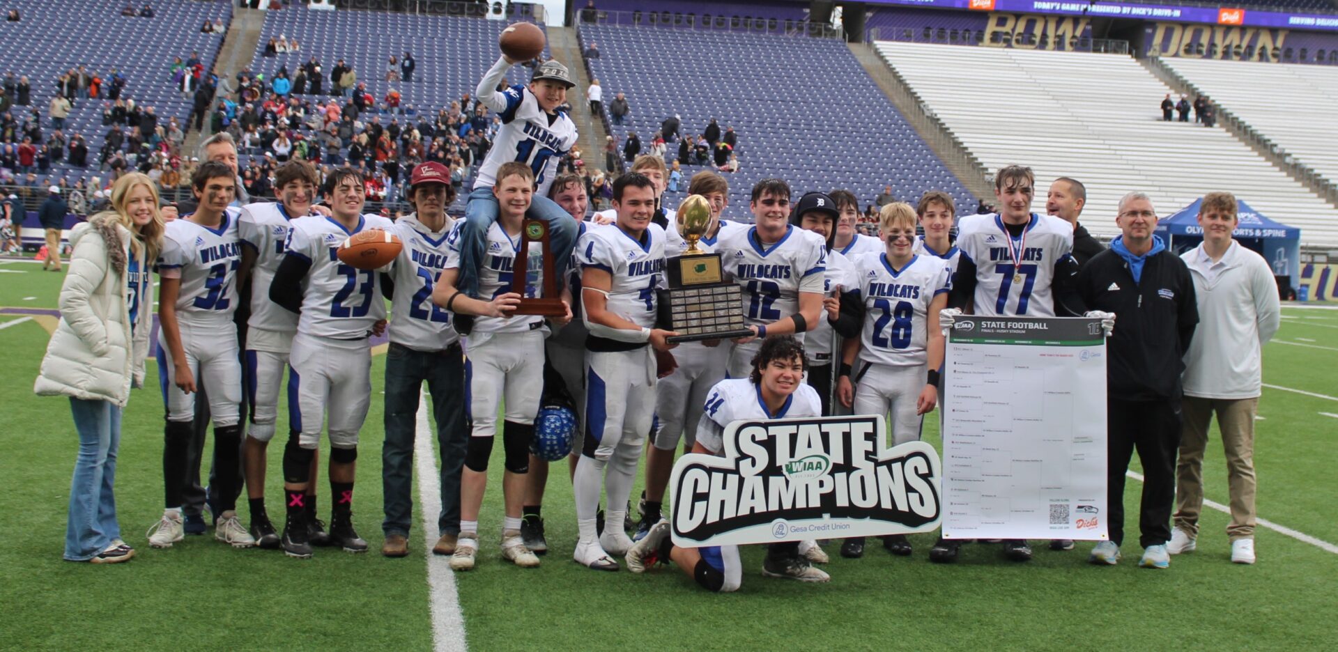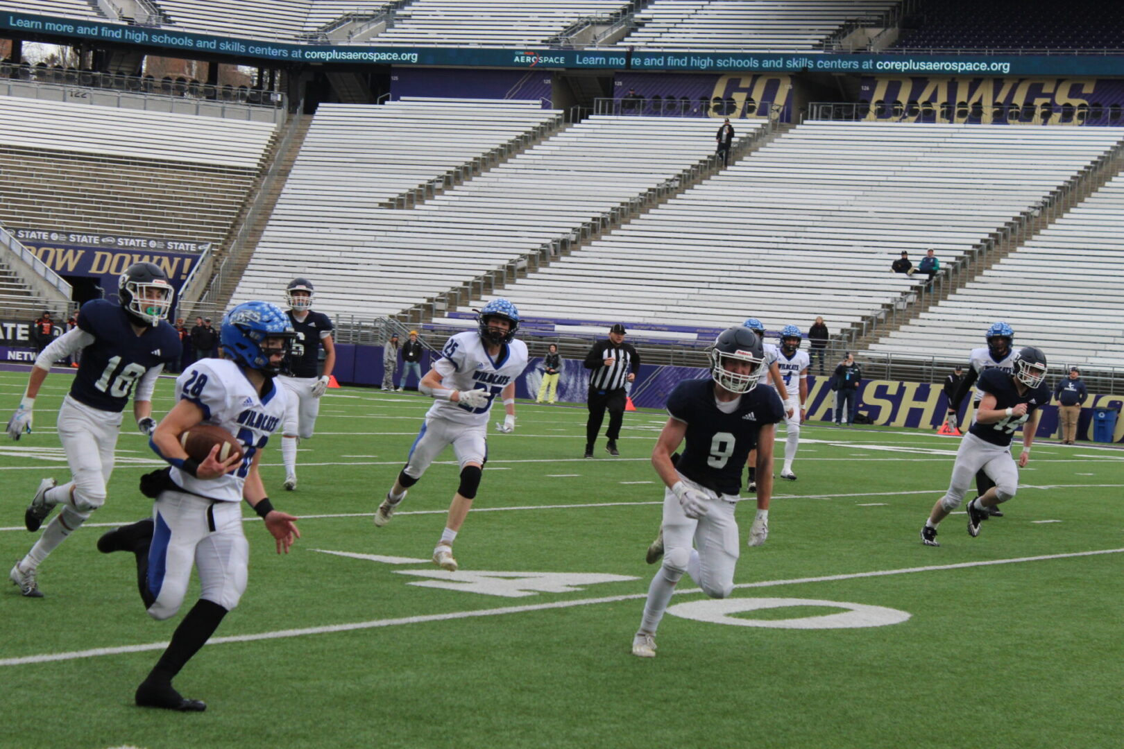 (Seattle, WA) Wilbur-Crestron-Keller came in with the experience of playing at Husky Stadium and looked to use that experience to take the next step in winning their 1st football state championship.