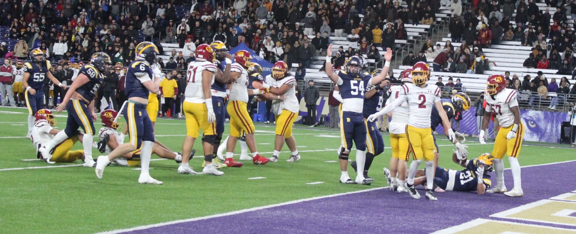 The big challenge would be in the semifinals when they battled Eastside Catholic for the 2nd time of the year. The Irish came into that game off their 20-0 shutout earlier in the season. But that is not the game that played out at Memorial Stadium.