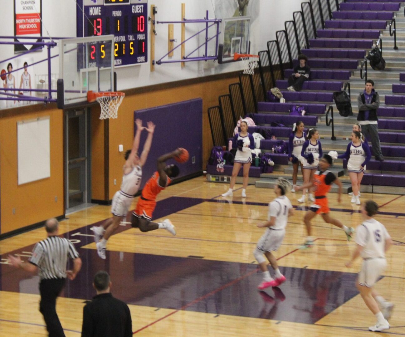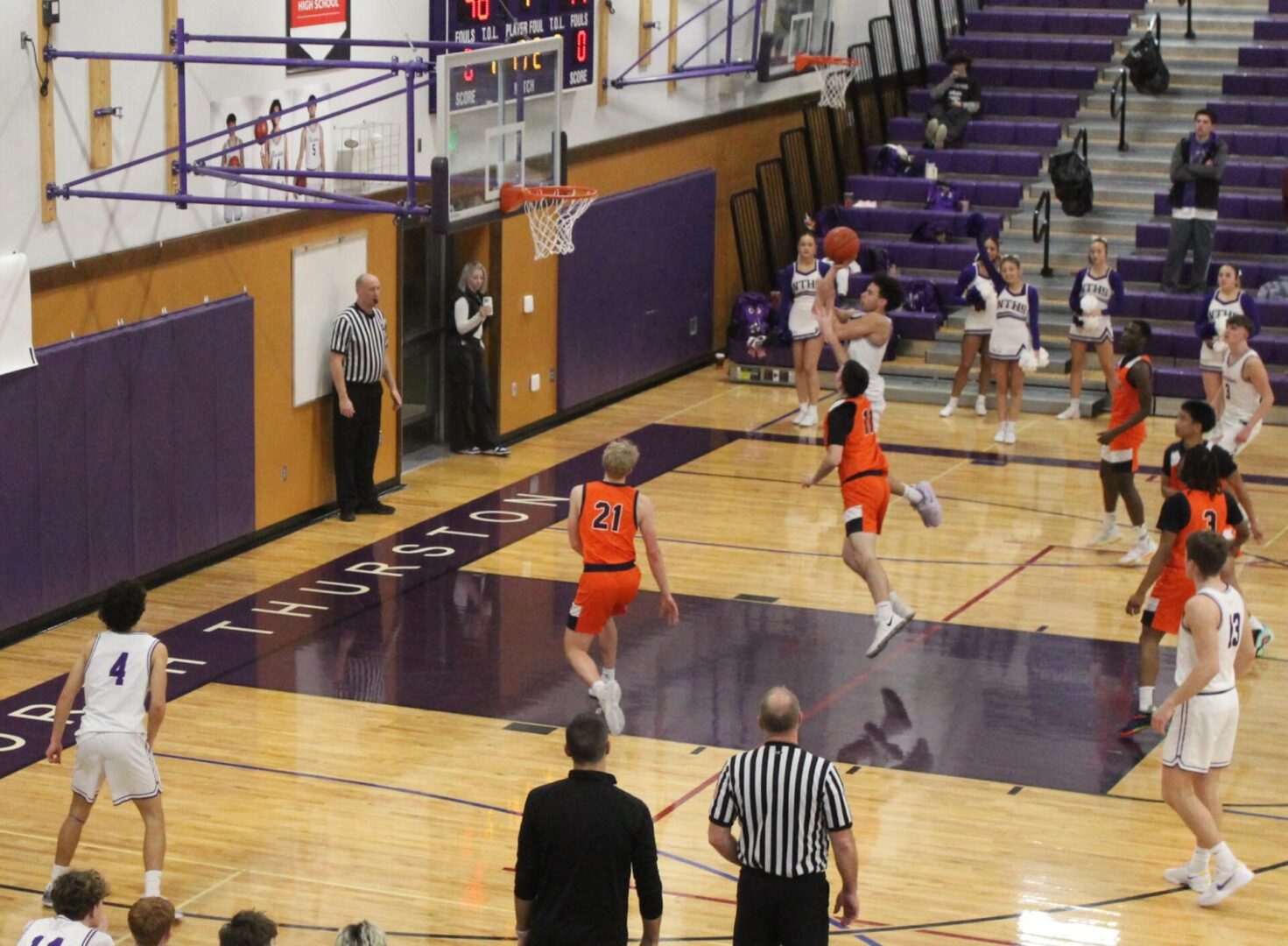 The Rams came out firing with their offense dominating the 1st half. Micah Anderson scored 12 of his 22 in the 1st half and 5 Rams got in the score book with Anderson, Jorden Walker and Liam Sheeran all hitting 3 balls. For Lakes, Jalen Boone didn’t start and would end up leading the Lancers with 7 points at the break but North Thurston was in charge with a 35-26 lead and nearly had an 11 point lead after Sheeran stole the ball with 2 seconds to go but missed a shot at the buzzer.