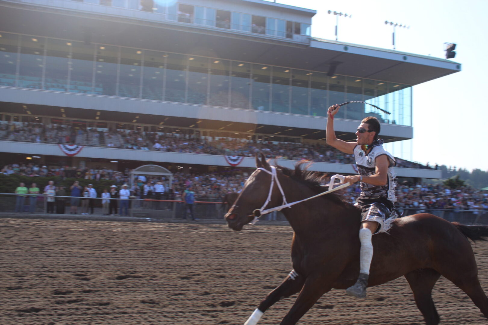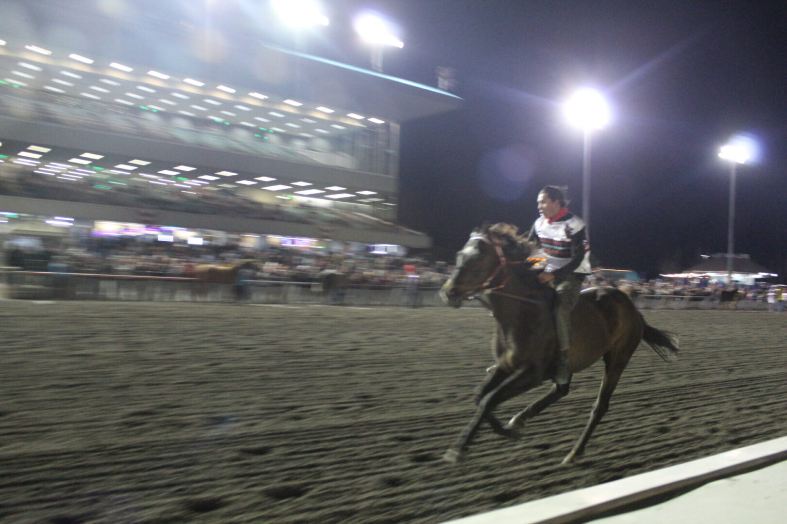 (Auburn, Wa) Friday night was the kick-off of the 3-day Muckleshoot Gold Cup Indian Relays. 21 tribal teams competed Friday, Saturday and Sunday with $84,000 worth of purse money on the line. The teams battled through the preliminary of 3 heats each day on Friday and Saturday.