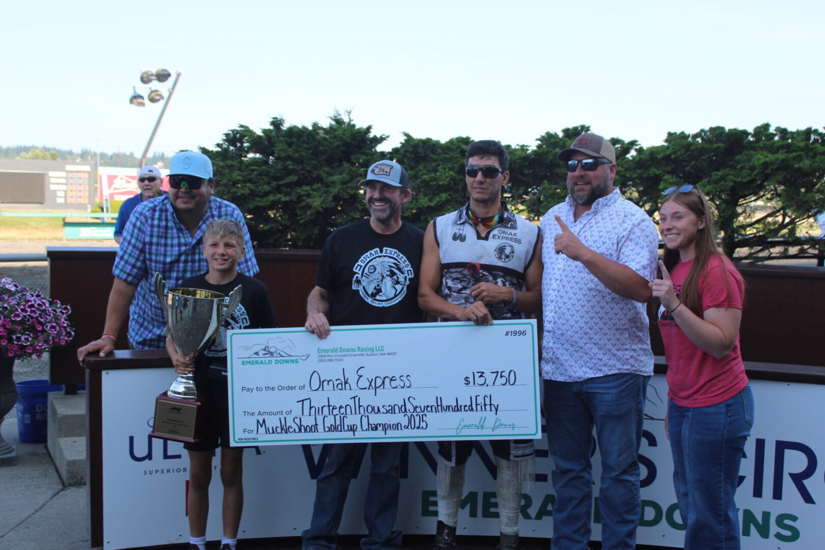 With the win, Omak Express becomes the first 2-time winner over the 9 years of the Muckleshoot Gold Cup winning it in 2022 and now 2025. Omak Express collected the $11,000 first prize check and earned $13,750 for the weekend.