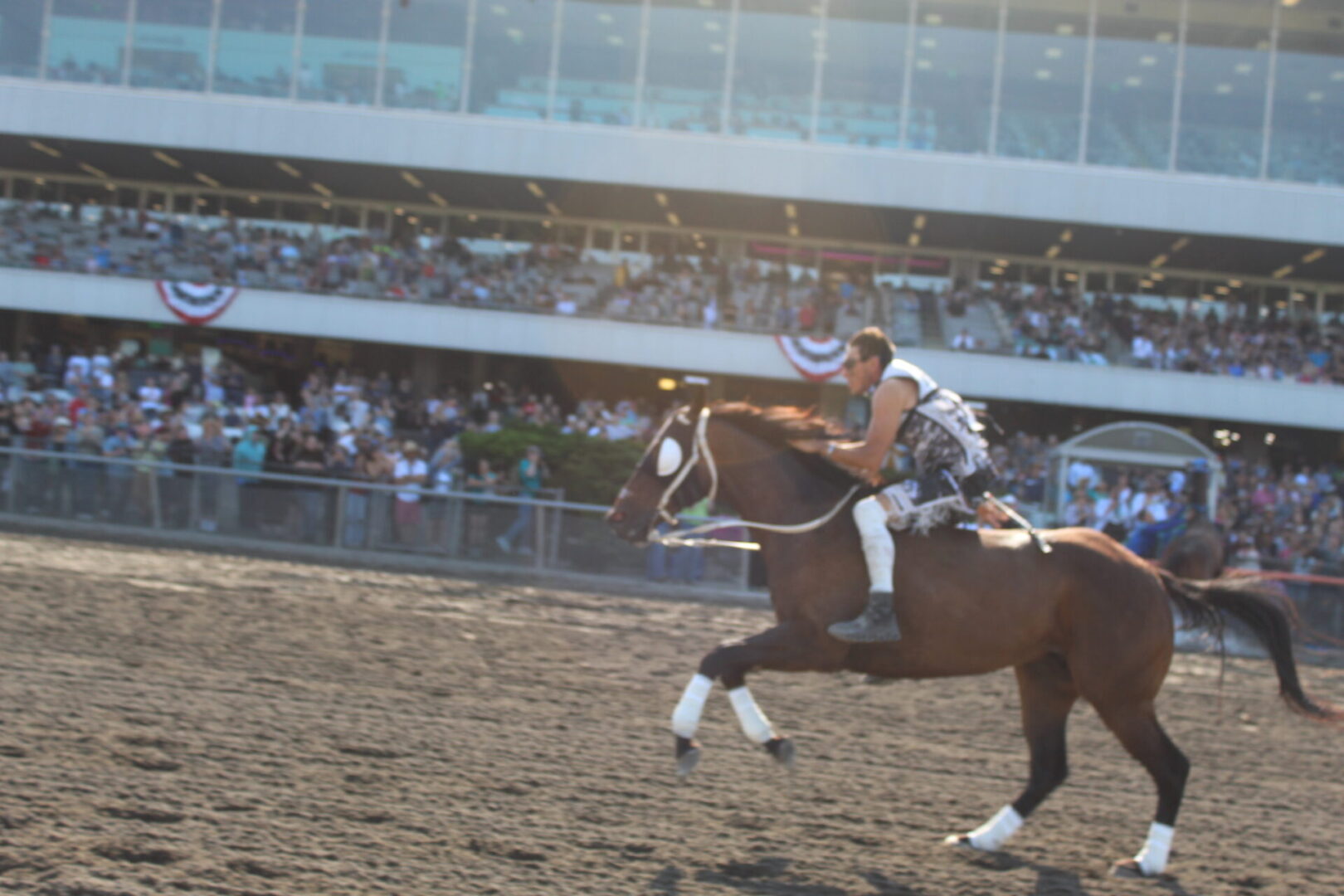The big shift for Abrahamson was a perfect transition on the second leg where Ryder Abrahamson not only shifted horse in about 2 seconds he avoided the in-coming traffic while Teton and Azeri Coby got hung up on the exchange. Abrahamson rolled out to a big lead with Chazz Racine and Carlson moving into 2nd turning down the backstretch for the 2nd time. Teton would move past Carlson slowing down for the final transition.