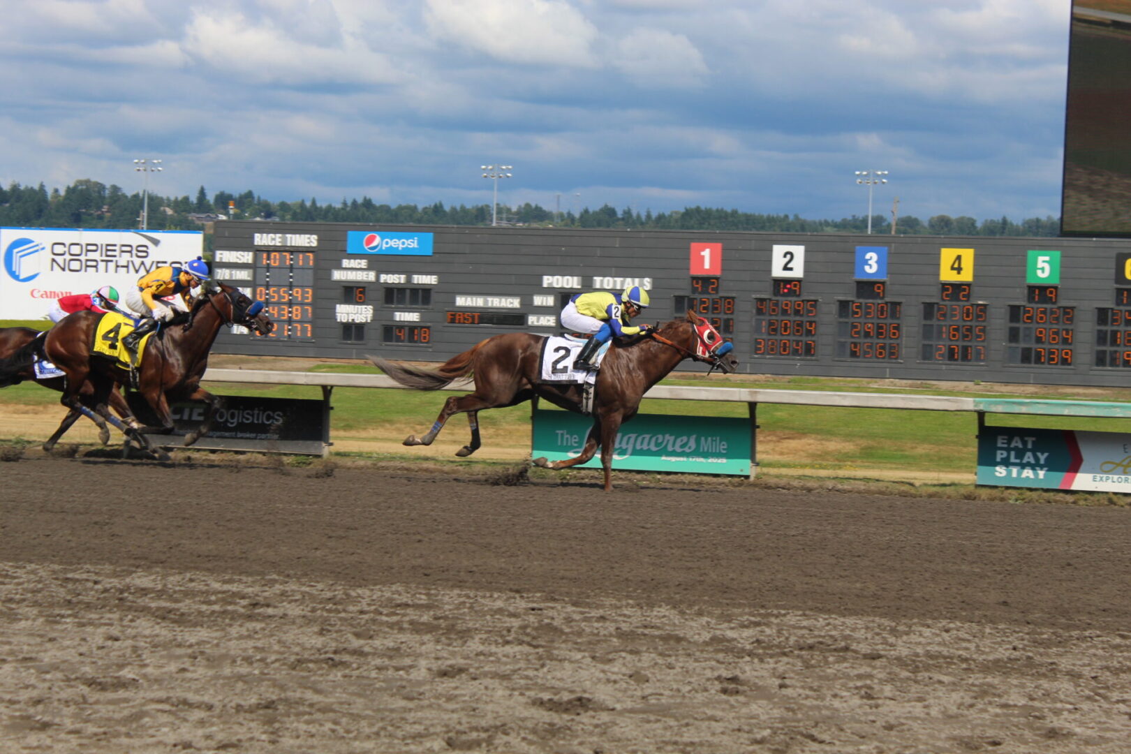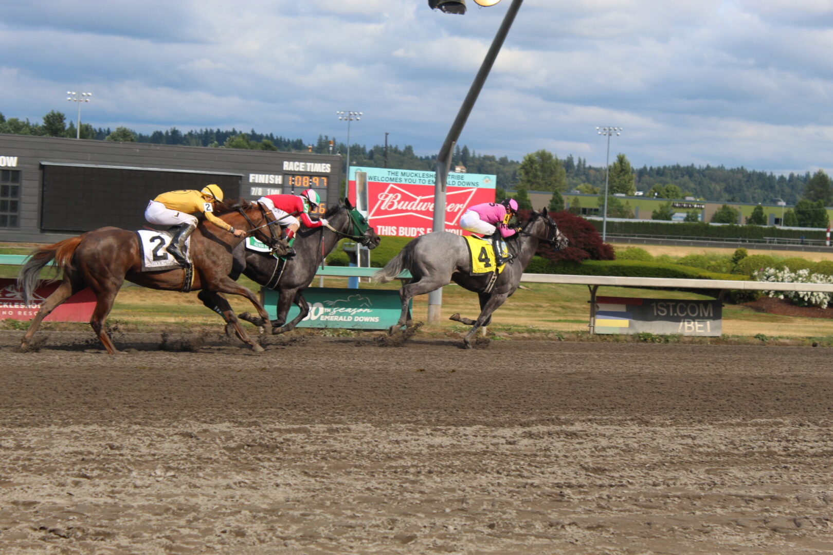 (Auburn, WA) After a sloppy and wet-fast track on Saturday, the 1st Super Stakes day of the season the sun came out and the track was fast. The rain on Saturday certainly tightened the track that ended with fast times and a bit of a front-end bias.