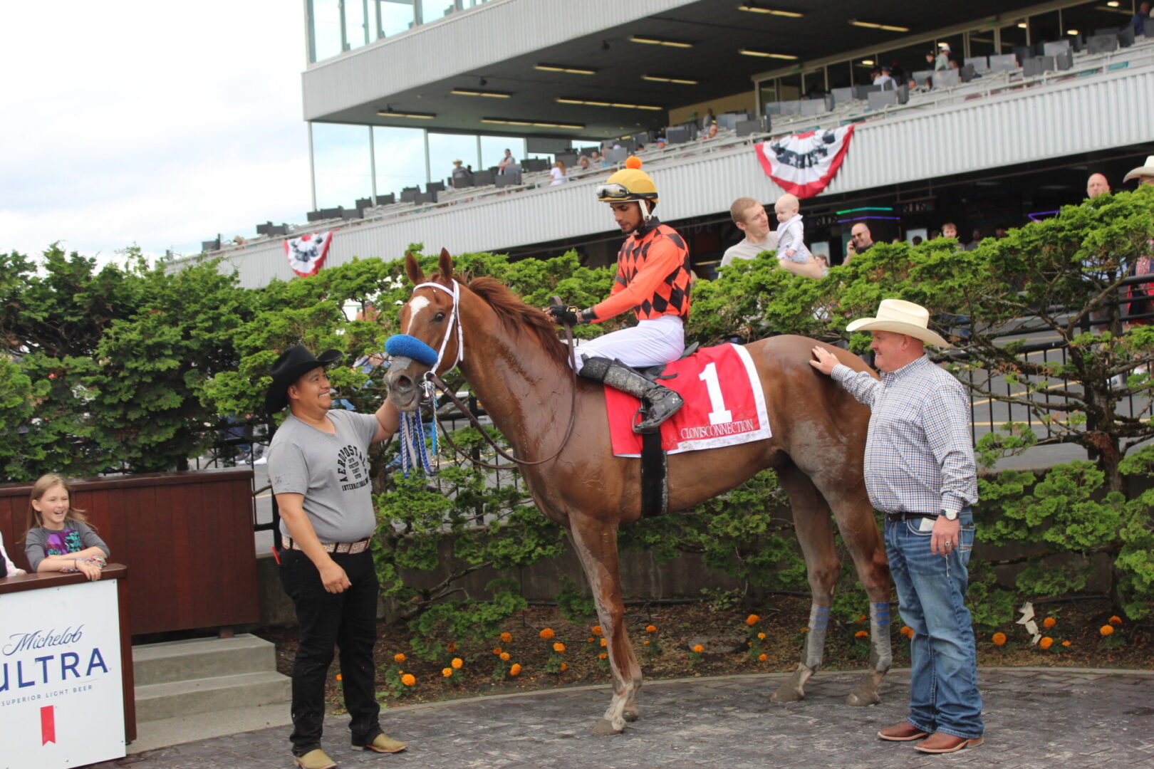 The was trainer Blaine Wright’s 3rd Stakes win in a row, and he couldn’t have been more pleased with how Clovisconnection ran, and the job David Haldar did on Clovis. We asked Wright about the lack of early speed. especially from the 1 hole. Wright said, “I told David not to hurry out of the gate and let the other speed do their thing. Let him settle and then look to get to the outside so you don’t get trapped.”