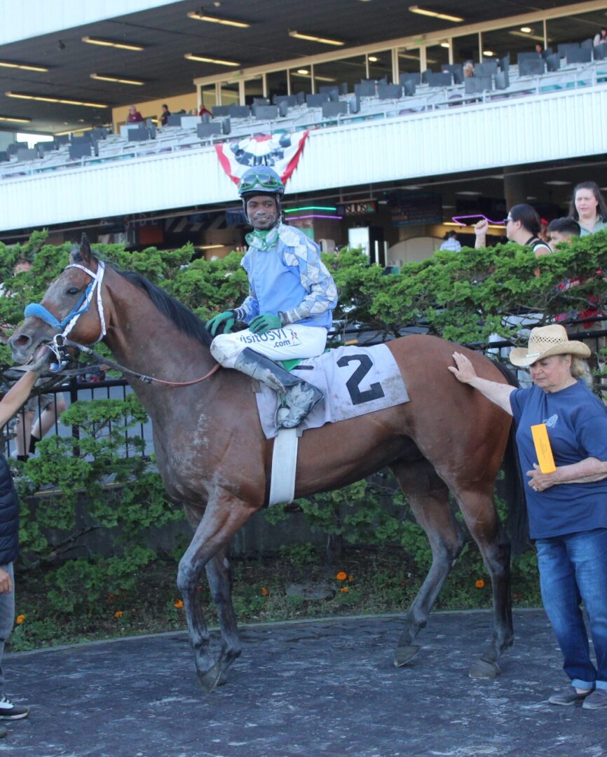The other familiar face was Jake Samuels who had ridden at Emerald Downs in 2022 finishing 8th with 20 wins. His future wife Kassie Guglielmino, now Kassie Samuals also was riding in 2022 when she suffered a broken leg. Kassie won 7 races and finished 11th in the standings. The couple now make their home in the Northport area of Eastern Washington and have a daughter.
