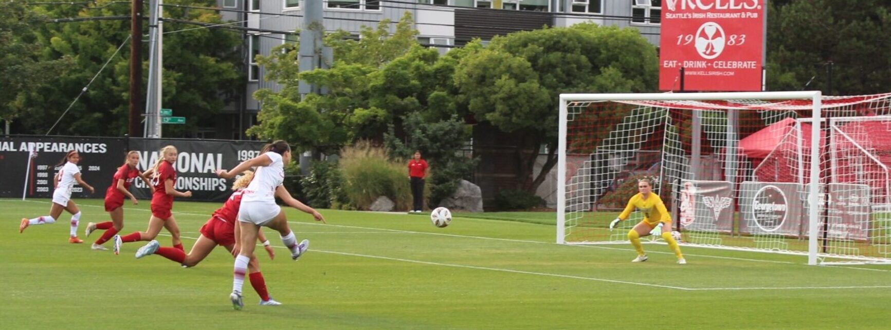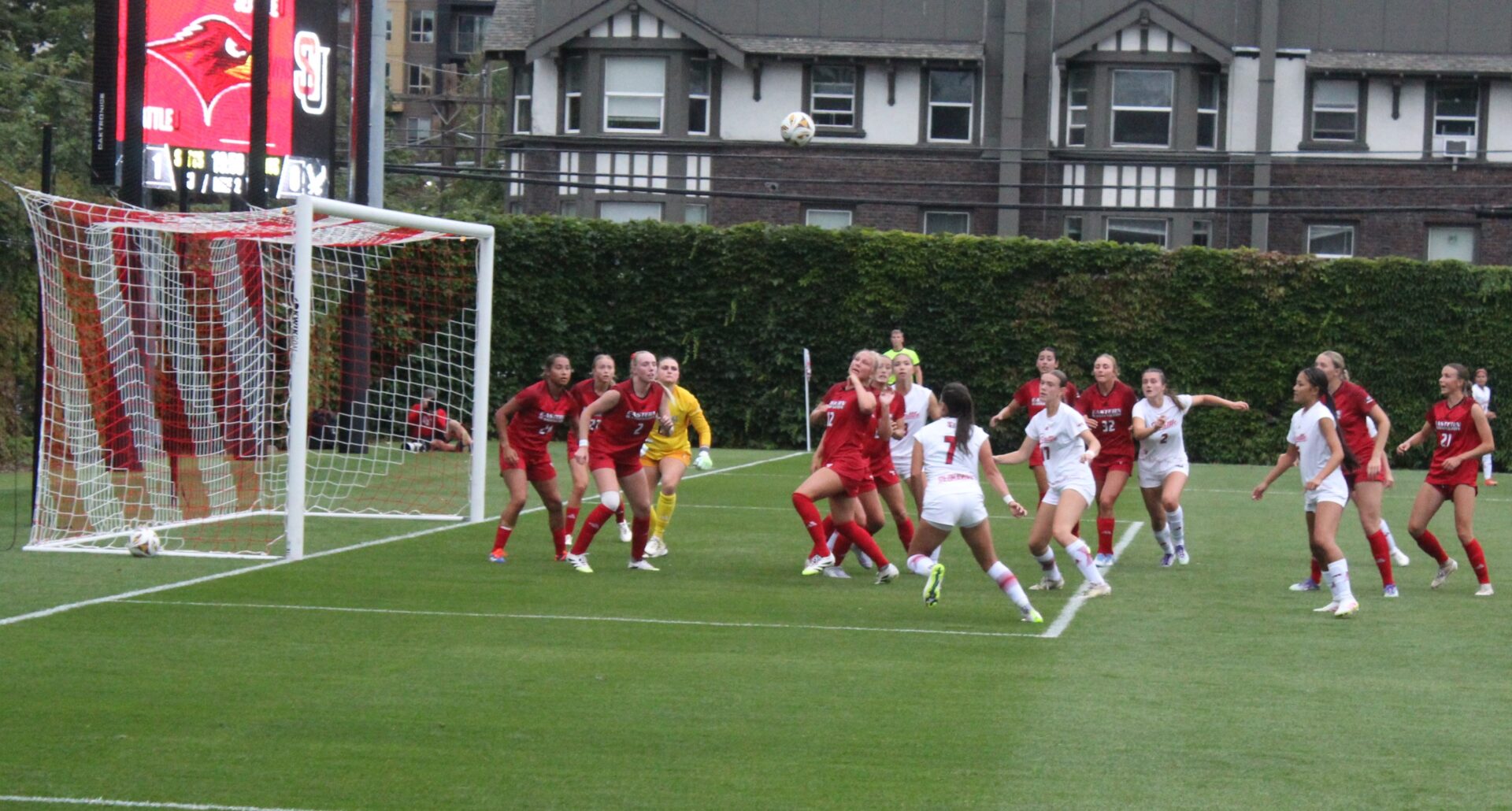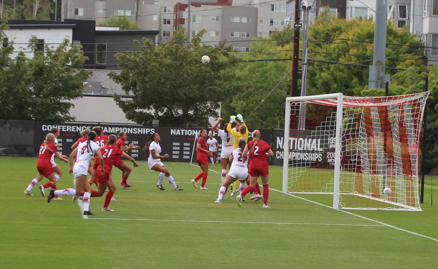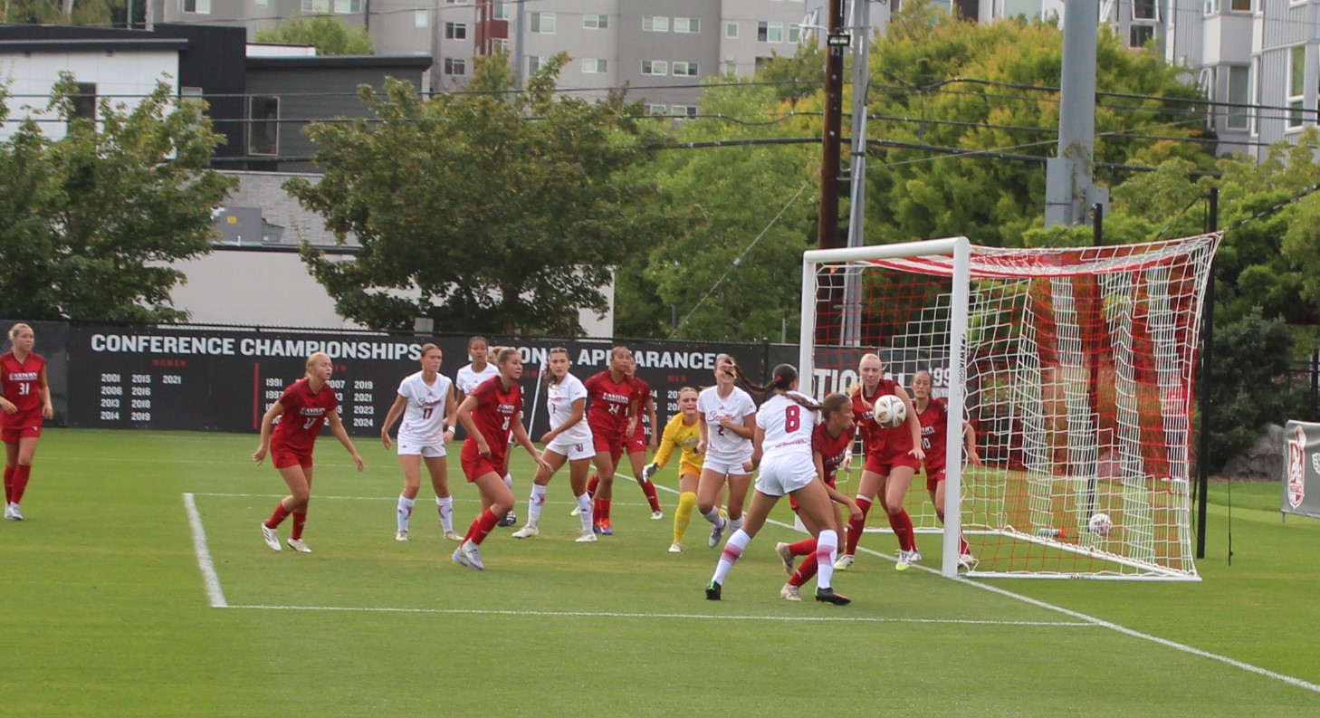 Seattle U put up 9 corners in the first half with Kaaihue taking a majority of them. One of the best attempts on goal for SU came on one of those corners. Kaaihue sent the ball in and Penner got a head on it but EW keeper Kamryn Willoughby made a fantastic push save over the crossbar.