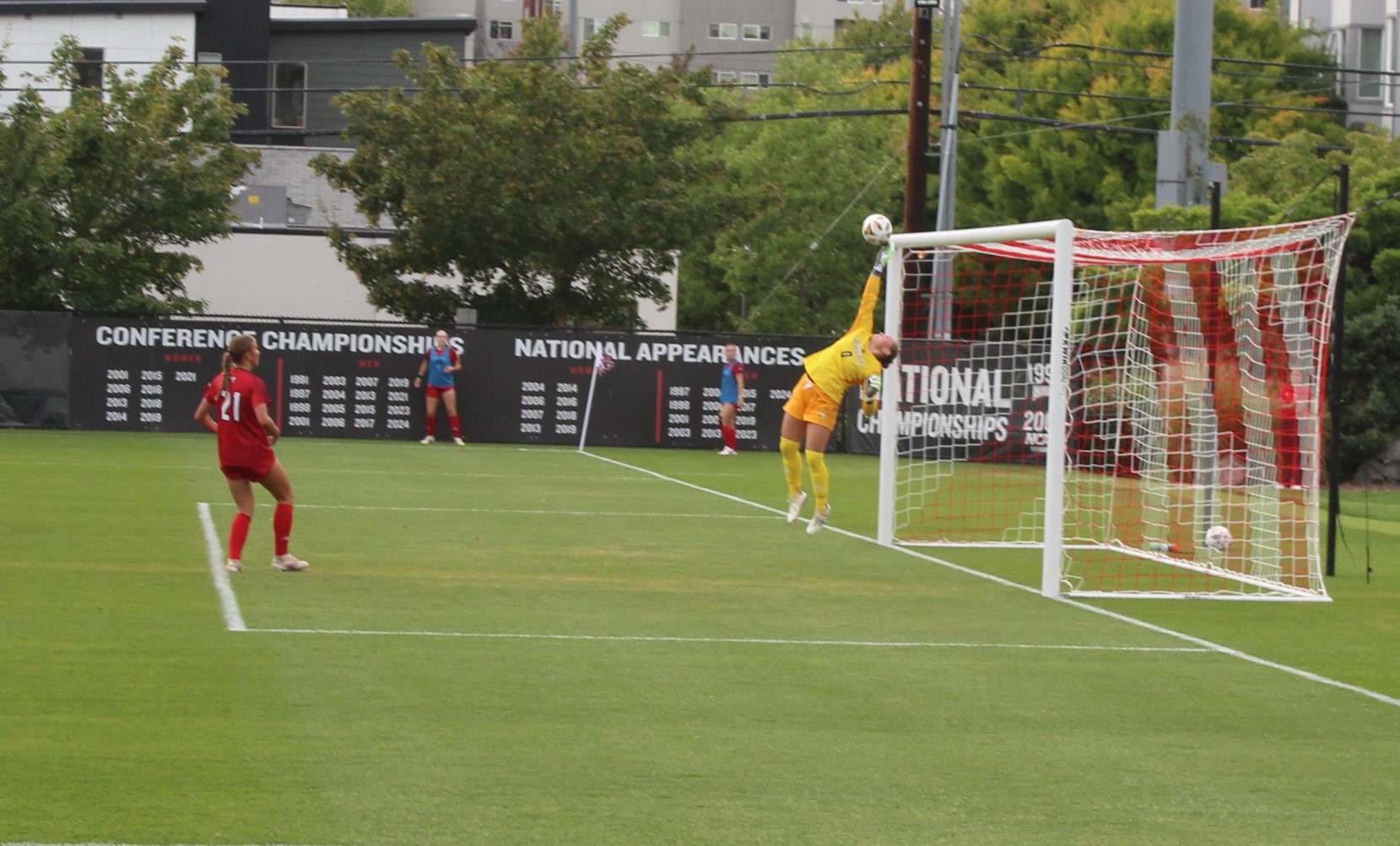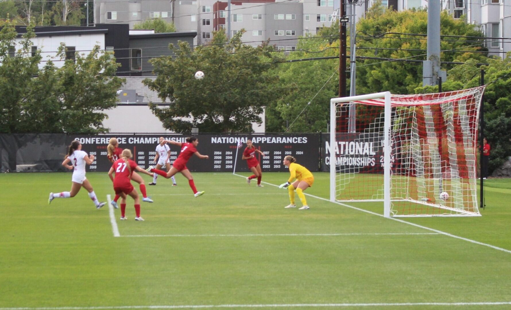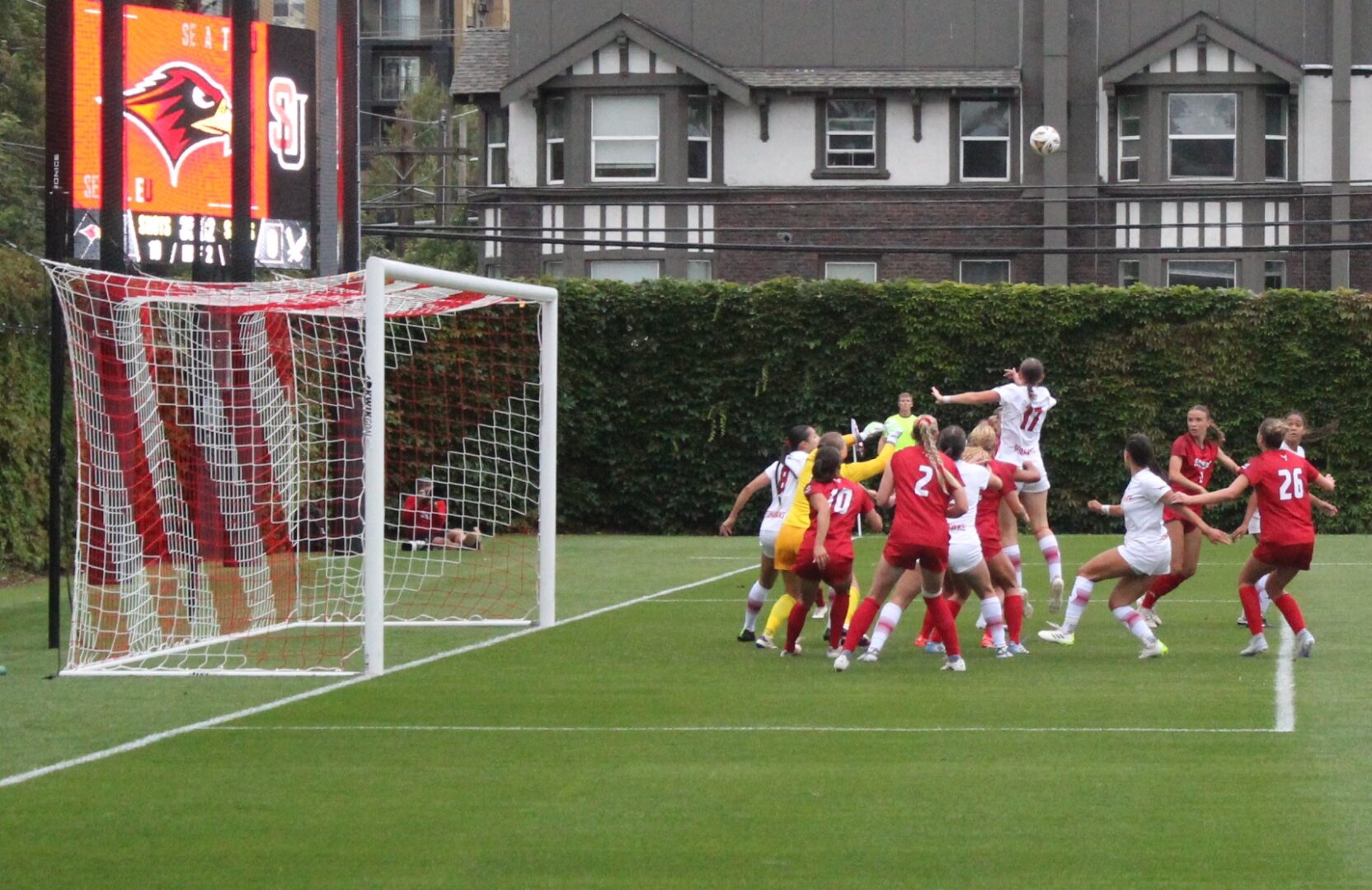 Seattle U put up 9 corners in the first half with Kaaihue taking a majority of them. One of the best attempts on goal for SU came on one of those corners. Kaaihue sent the ball in and Penner got a head on it but EW keeper Kamryn Willoughby made a fantastic push save over the crossbar.