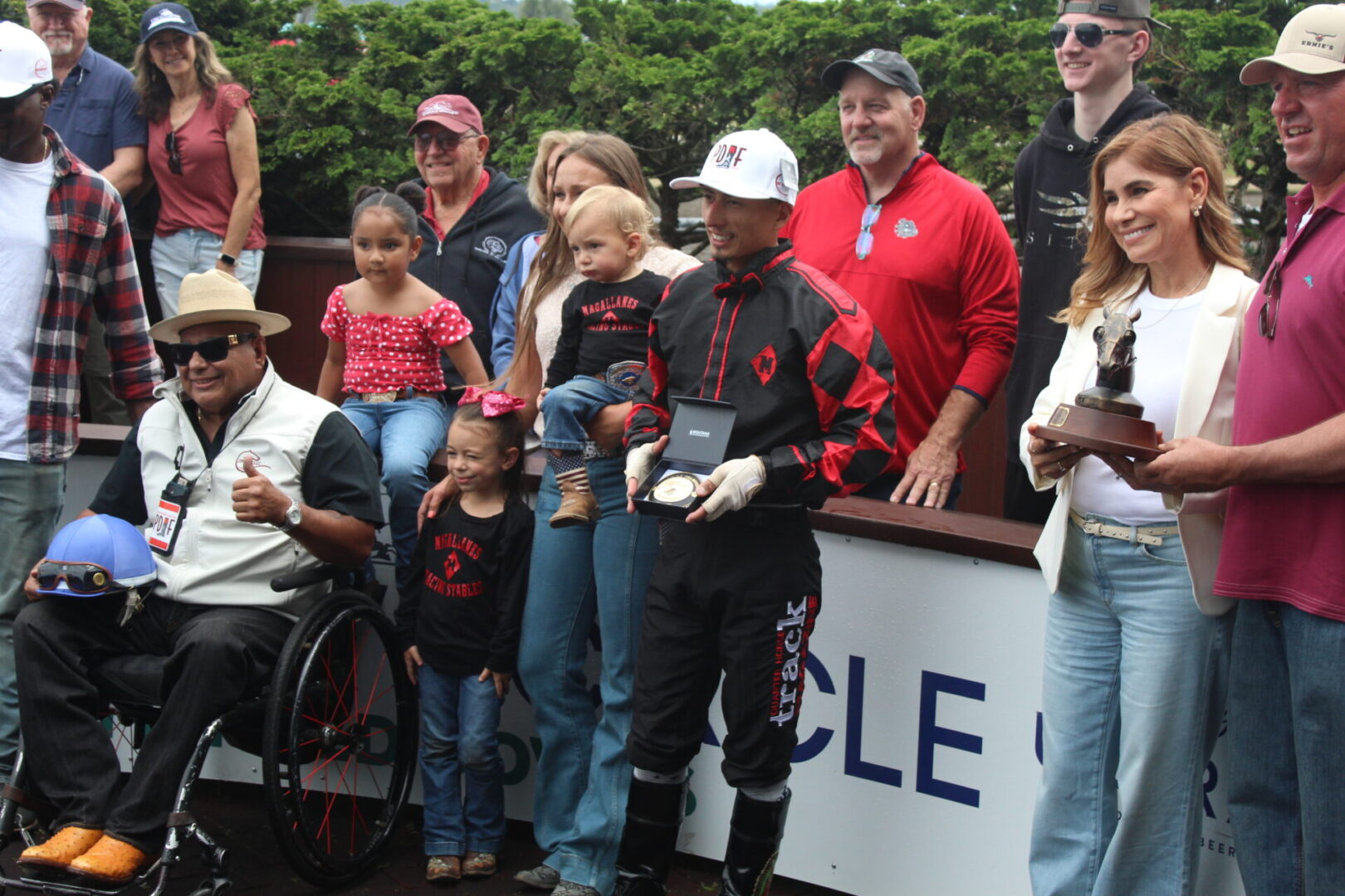When track announcer Tom Harris made the announcement the crowd gasped and the scramble was on to get Shaundas Eagle saddled again for Domoingues to get on and to move the Ribbon connections out while rounding up Shaundas people for the trophy presentation.
