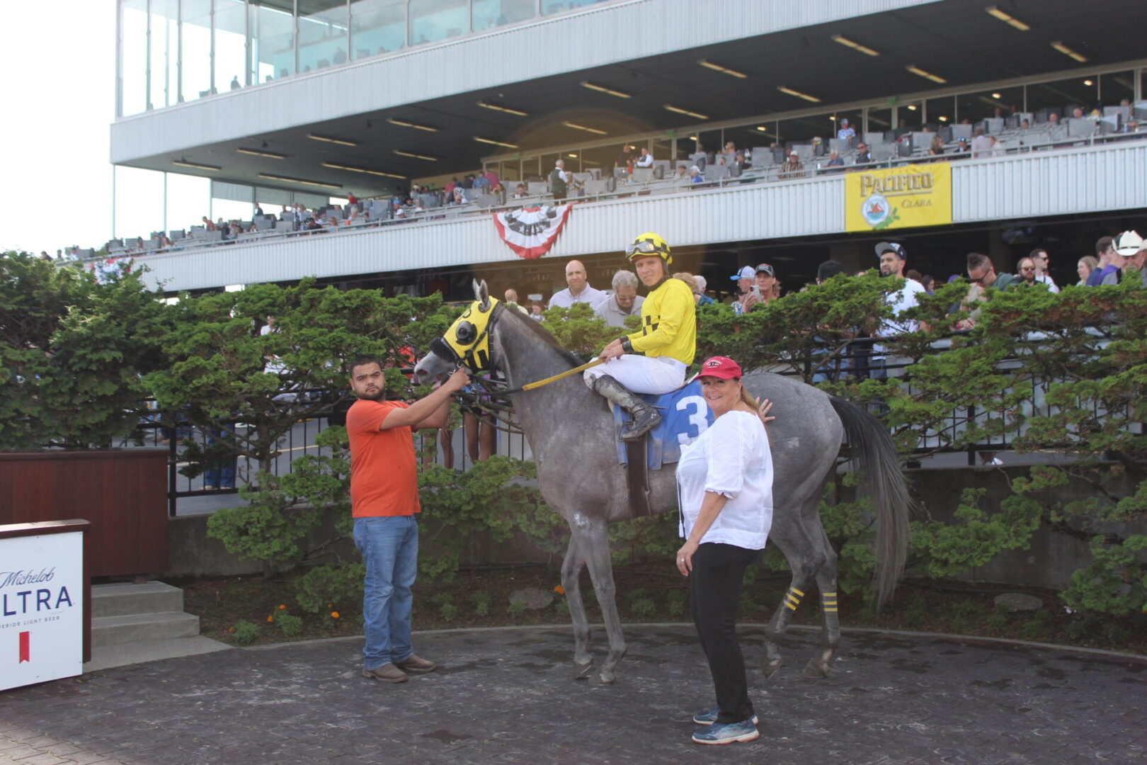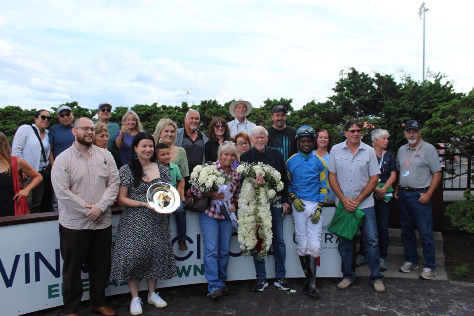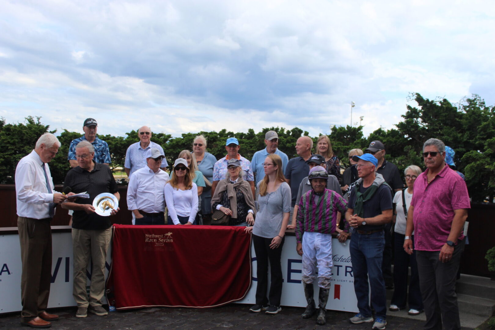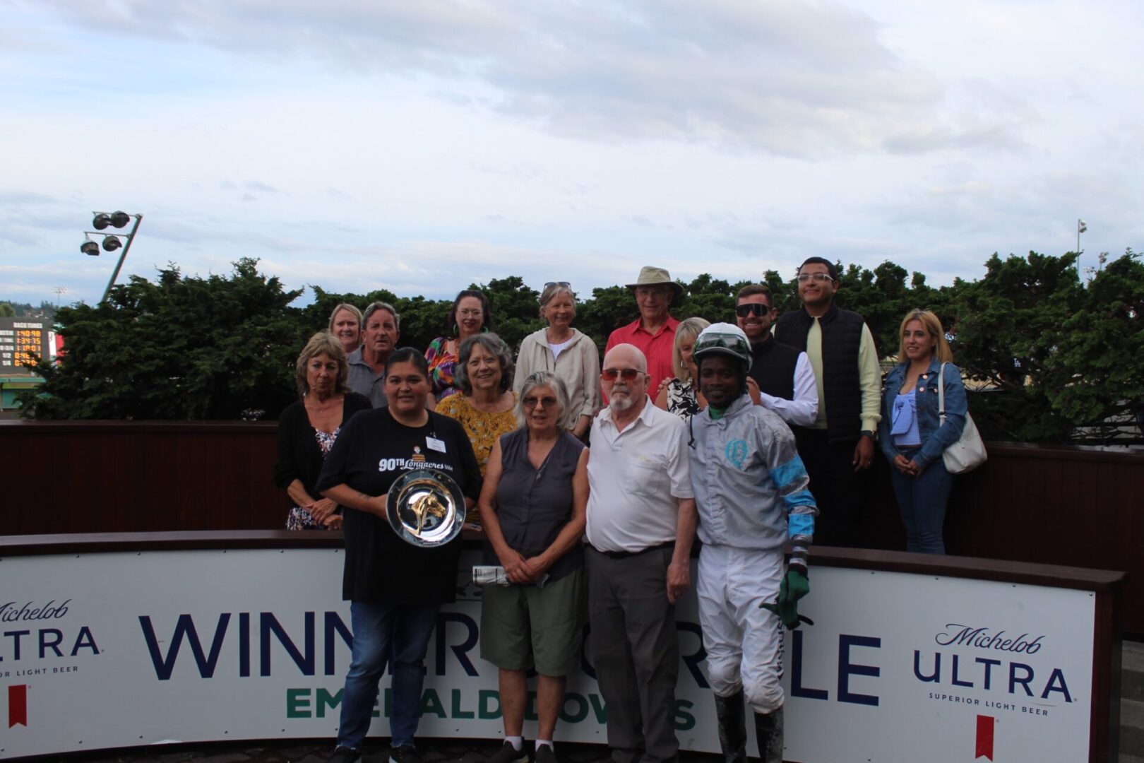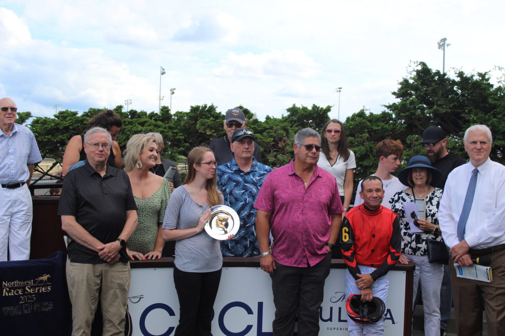 The winner is owned by the Q Stable which is D J and his wife Nancy McPhee. D J also is the trainer. The win has a lot more significance for the McPhee’s. D J had retired from training several years ago and was happy to be an owner and let longtime NW trainer Bonnie Jenne to handle the barn and the training. Jenne passed away earlier this summer after a battle with cancer.