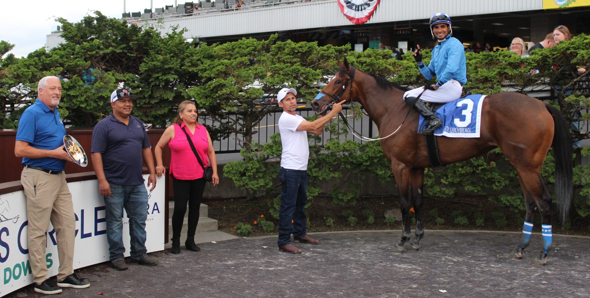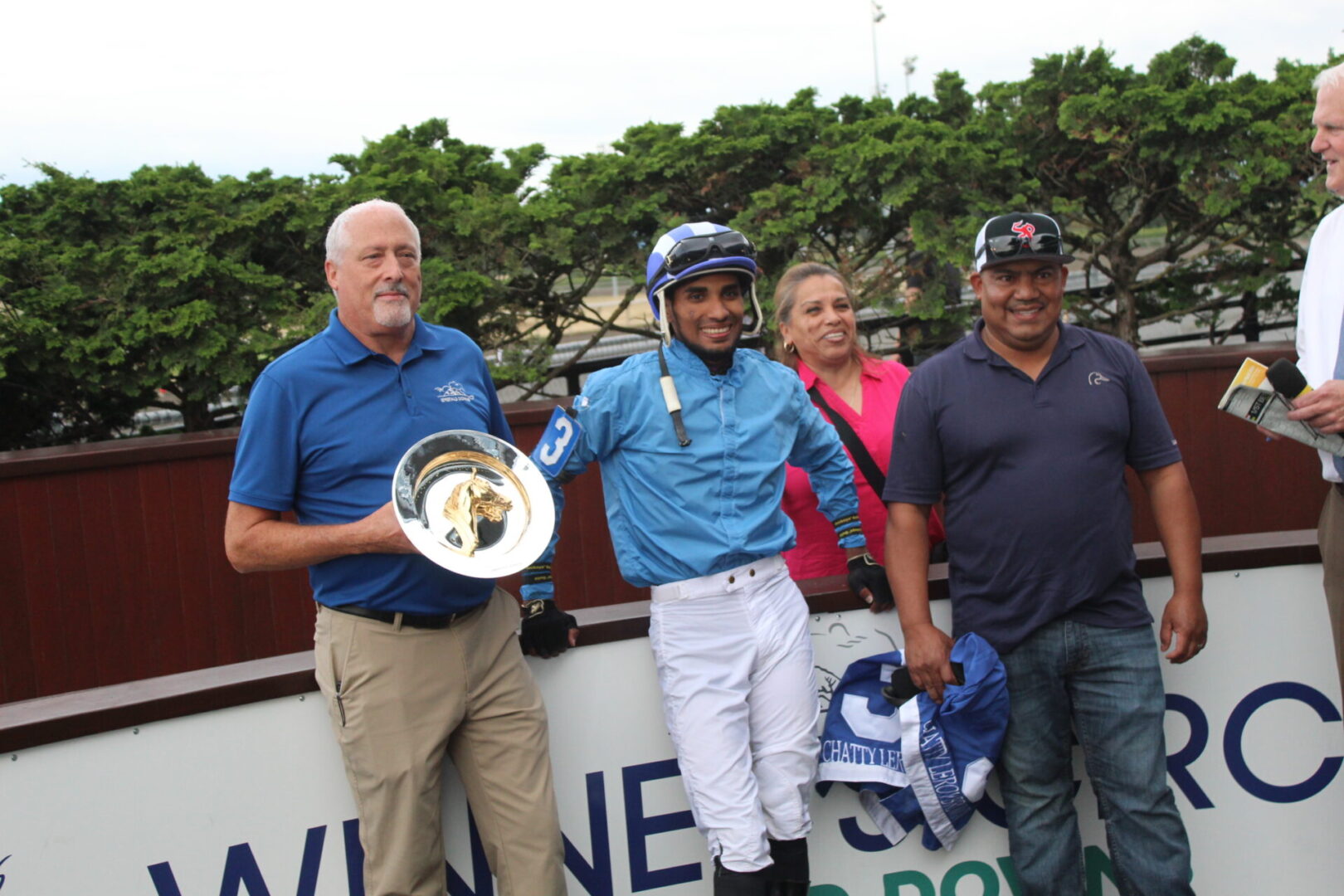 It was at this time Haldar felt he might be on to something with a clear lead of nearly 2 lengths turning for home. “I felt at the quarter pole we weren’t going very fast and I looked around and saw no one was close to me so I asked her to go and she did!” (More with Haldar in our interview below). Chatty Leroybrown expanded that lead to 3 lengths as she crossed the wire in a final time of 1:43.18.