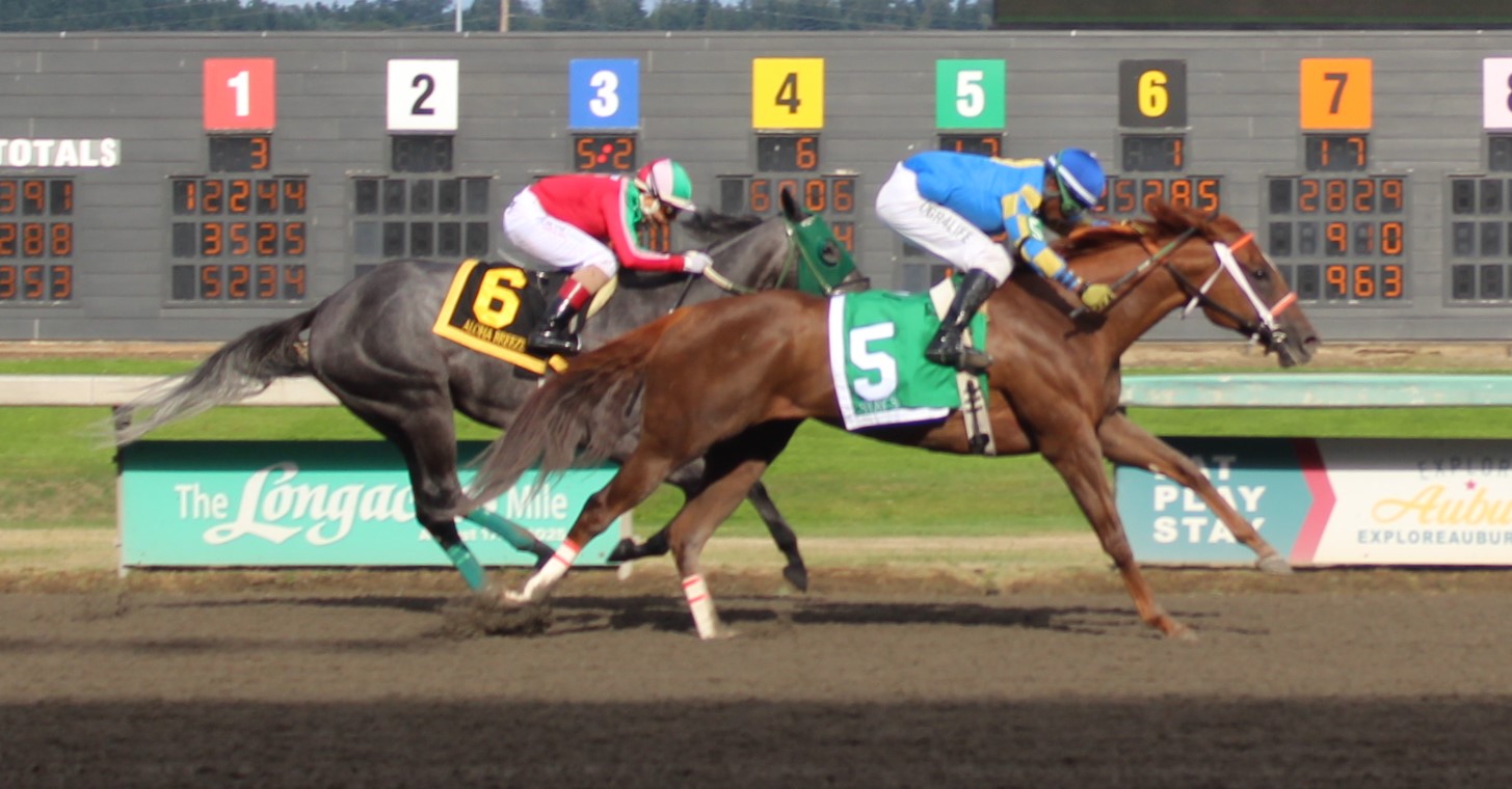 (Auburn, Wa) Championship Sunday feastured 6 Stakes races highlighted by the 90th running of the Longacres Mile. Coming into the day the analysis was the heavy favorites would all be difficult to beat and lots of favorites wouold likely rule the day. The big bets would all be hit with minimal pay-outs and the pick 6 would carryover because of multiple winners. Even if there was an upset maybe two, the likely singles or down to 2 runners would make up up for any 1 time surprise.