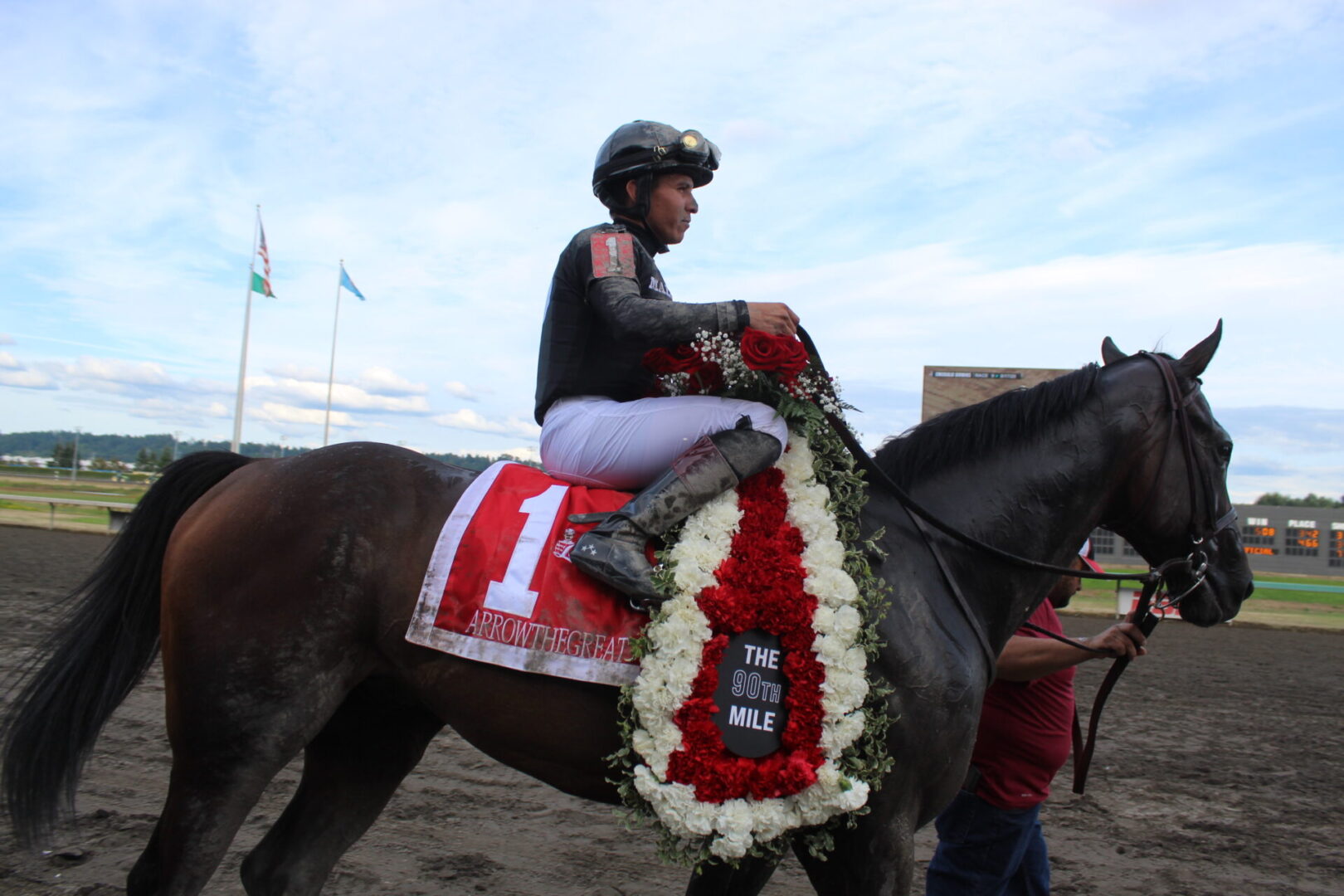 Under a rail-skimming ride by Manuel Americano, California invader Arrowthegreat powered to a 2 ¼-length victory over Clovisconnection in Sunday’s 90th running of the $125,000 Longacres Mile at Emerald Downs.