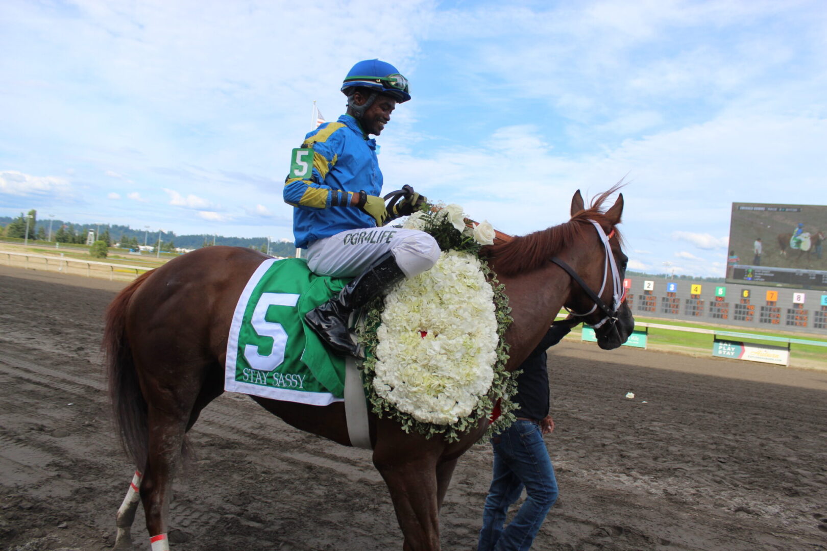Stay Sassy is a Washington bred by Stay Thirsty out of Pippa Bou Peep by Harbor the Gold and was bred by the owners Dave and Linda Olson.