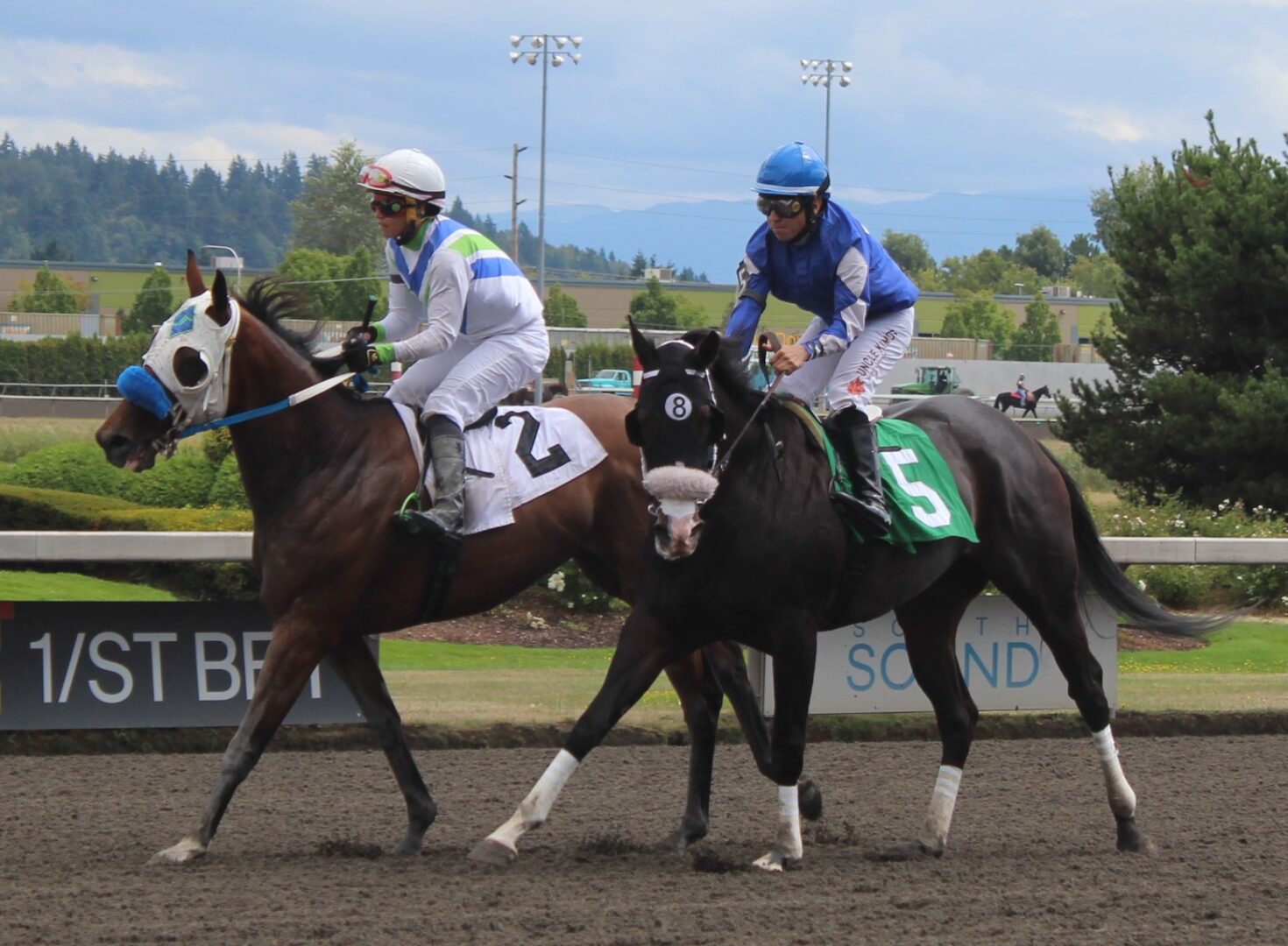 Longacres Mile day began with the 1st dead heat for the win on the year. Cantputyourpriceonfun with Manny Americano had the lead all the way to the last jump when Betty Ryano caught her right on the line for the tie. Alyssa Morales won her 2nd race of the year and did it in back-to-back fashion winning the last race on Saturdasy and getting her 2nd win of the season on her next mount. Danziung Zella with Chel-c Bailey was not far back to take 3rd and Cougar Jewel under Kiaman McGregor was 4th.