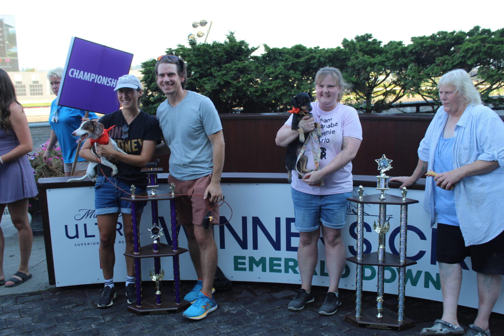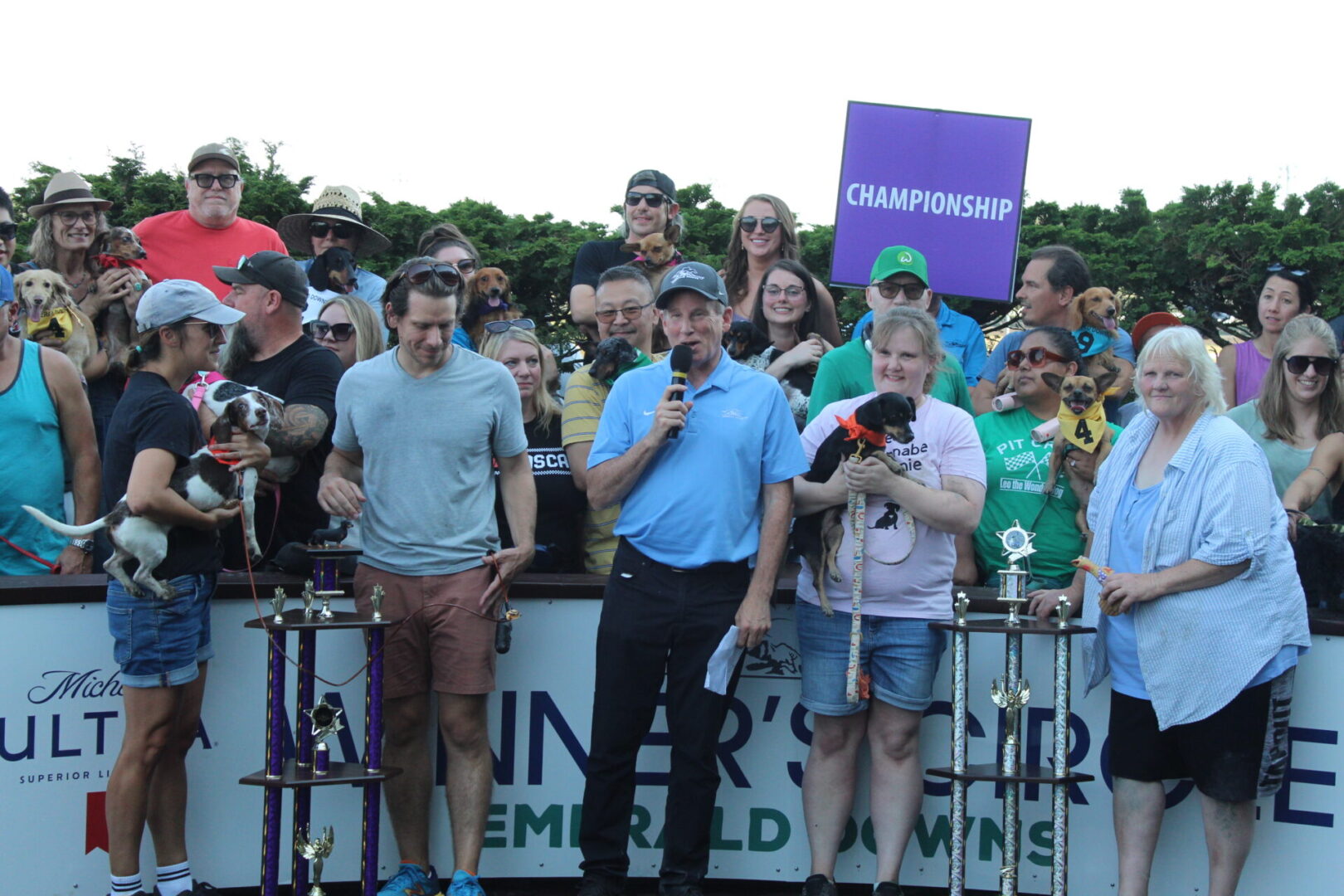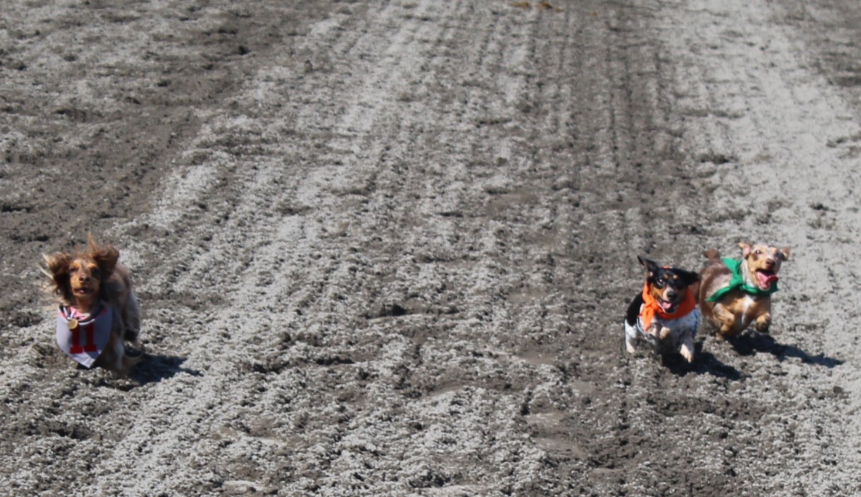 Nine races were on the Sunday afternoon card and a total of 64 starters for an average of 7.1 per race. The betting handle was a little above average at $1,429,931 or $158,881 per race. The crowd was very good for as warm as it got in the afternoon but after the second round of wiener dog qualifying the crowd did thin out. But again the betting stayed consistent which is a huge positive sign.