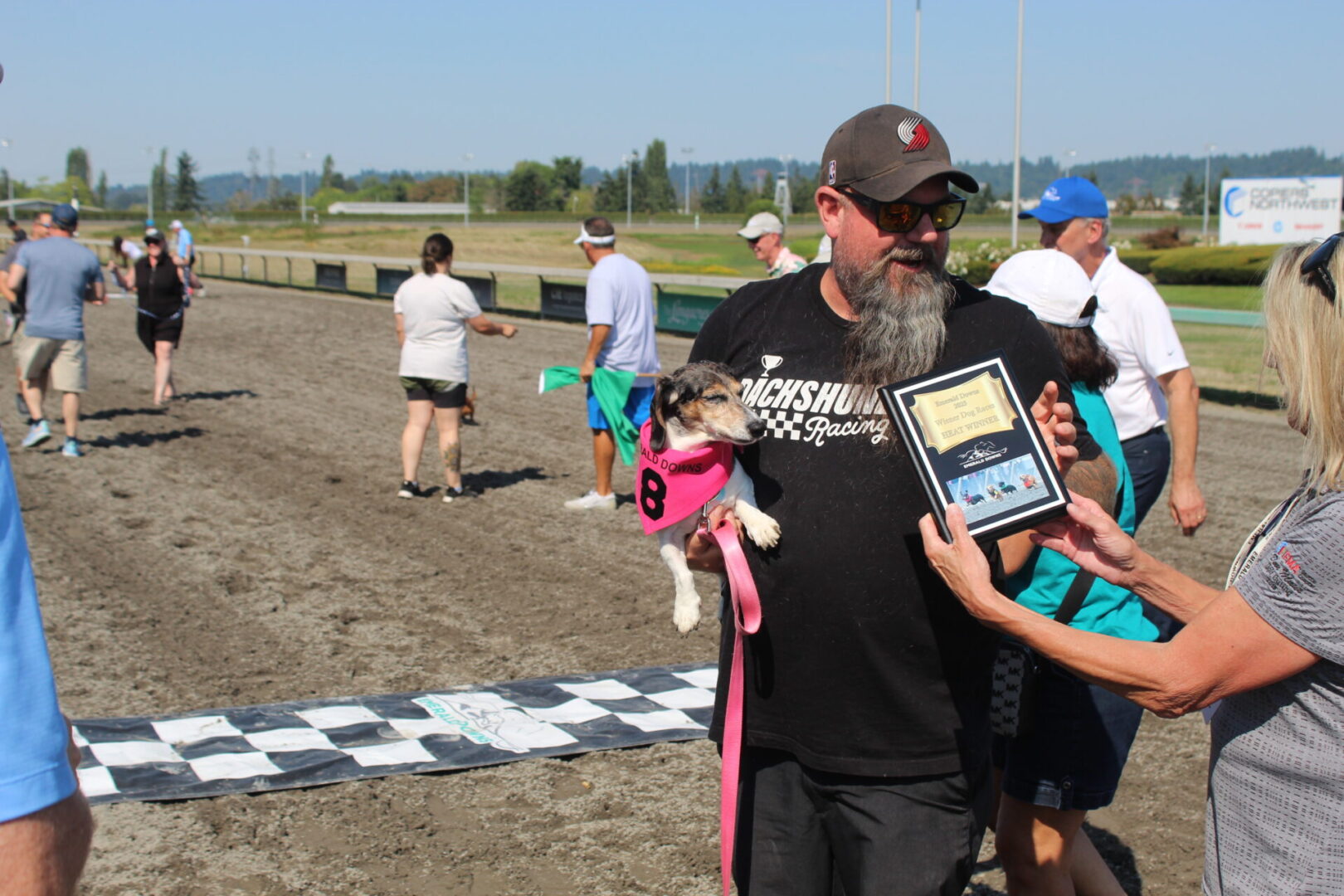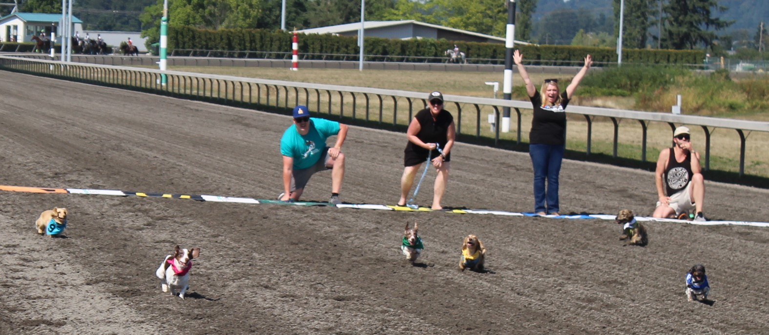 (Auburn, WA) A sweltering Sunday afternoon did not slow down the Wiener dogs and Wannabe’s with 10 heats of dogs races and 2 Championship runs. Our Wiener dog and Wannabe’s coverage is at the bottom of this post.