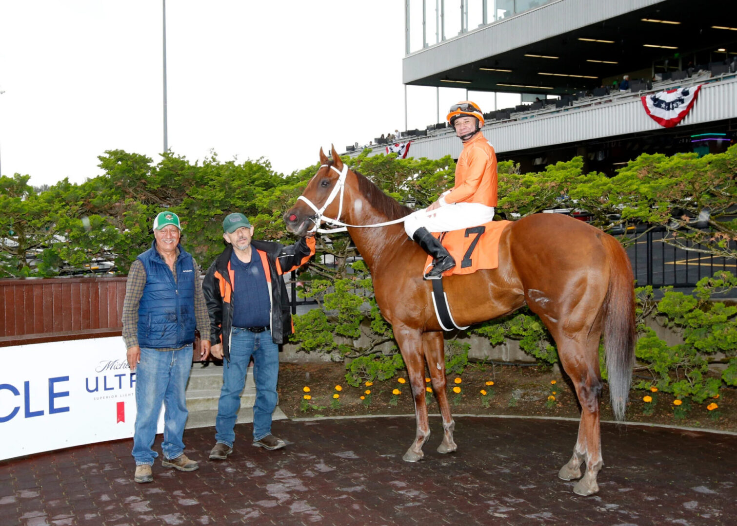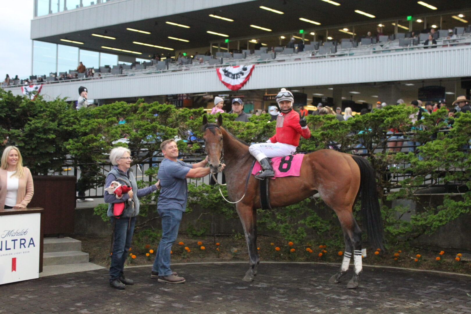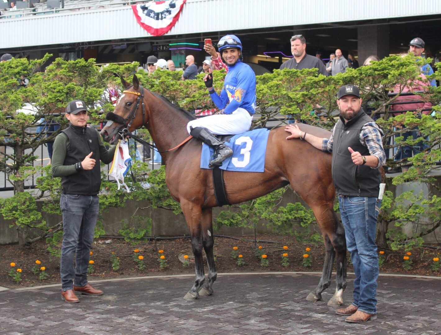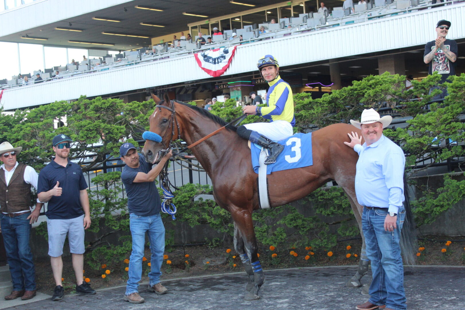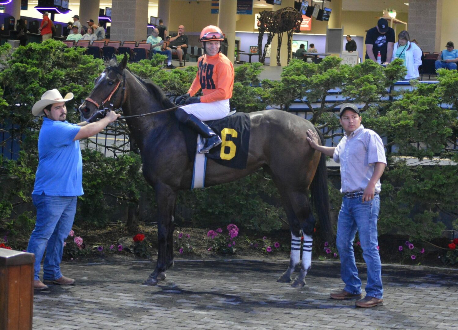 One of the old pro’s getting it done. Enriquez had been shut out so far this year when he doubled on Monday including the feature race with Saleen G T. Enriquez 2-0-2 from 9 mounts and shoots his win percent from 0 to 22%. Good week for one of the many former riding camps in the jock’s room.