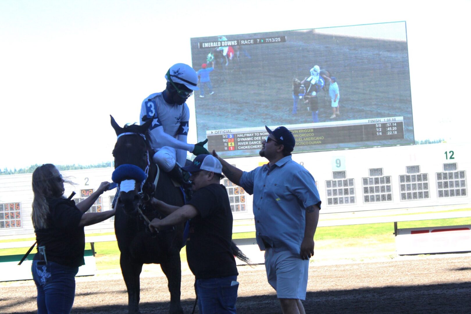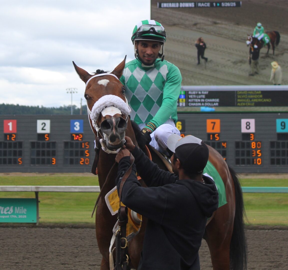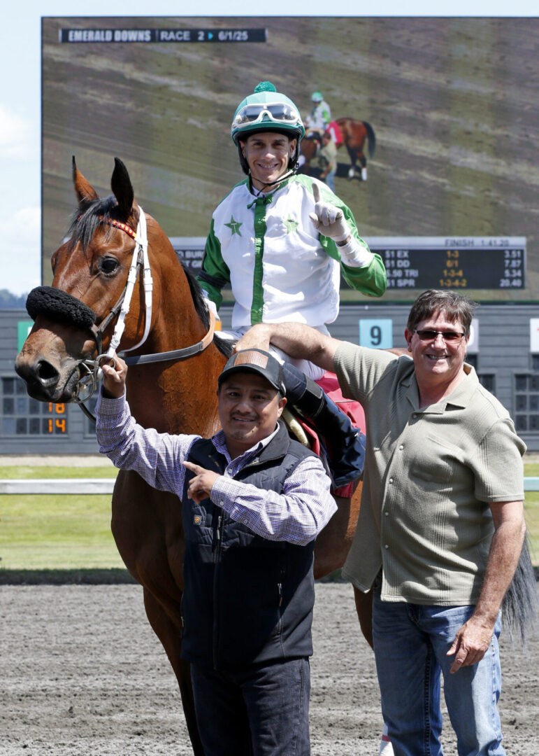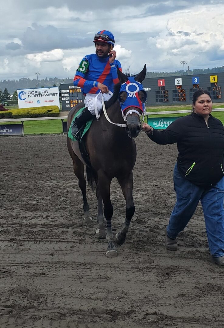 Carlos Montalvo got his first win of the season with an old friend, Aloha Breeze. Aloha Breeze was also Montalvo’s 1st ever win at Emerald Downs when he moved to the NW in 2023. Montalvo was 1-4-0-0 from 7 rides. Best week of the year for Carlos so far.
