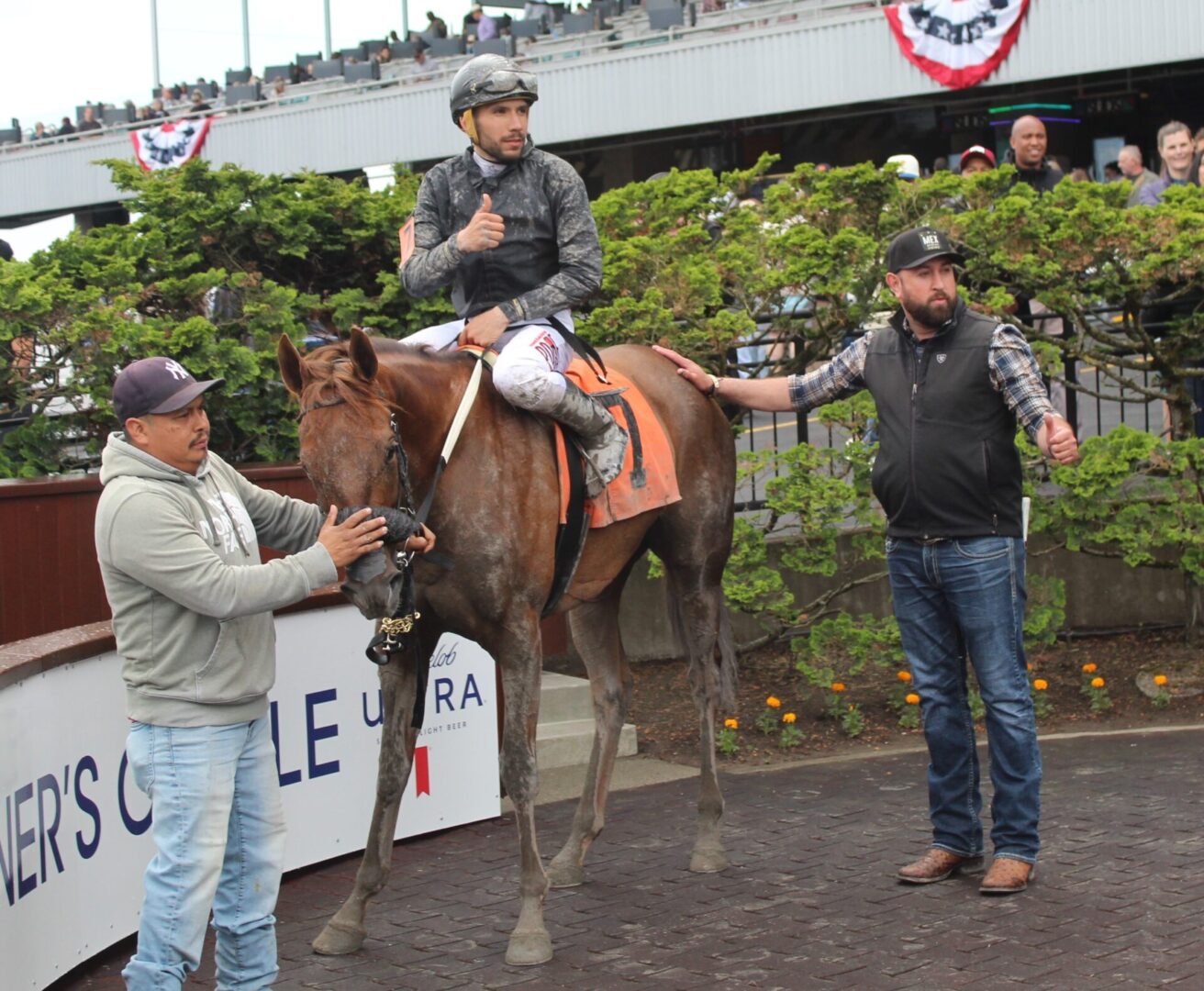 Francisco Monroy is used to riding outsiders and the hard working journeyman will give each one of his rides the best chance they can get even when they are in over their heads. What turned out to be a bad time for jockey Kevin Orozco to cut his foot, opened an opportunity for Monroy. Both Monroy and Orozco are regular riders for the powerful Kay Cooper barn. Orozco was the pilot aboard last year’s horse of the year, Precise Timing trained by Cooper. When Orozco had to take the week off because of the incident and stitches in his foot opened the door for Monroy to get a chance to ride Precise Timing in the Kent stakes. Going off at 10-1, Monroy went to the lead and Precise Timing showcased her grit and competitivnesswhen she dug in and refused to let Ima Margarita Girl get by her deep in the stretch to win by a neck. Monroy had worked Precise Timing but on his 1st chance to ride her in a race he got the job done and won his 1st stakes race at Emerald Downs.