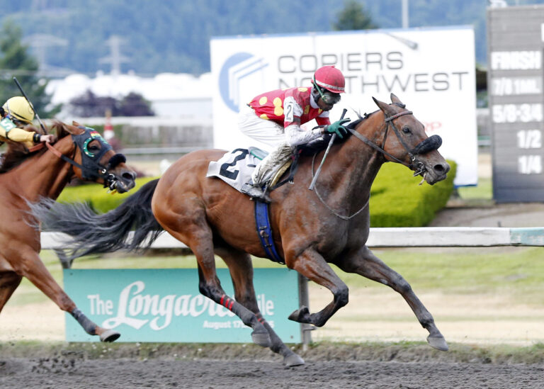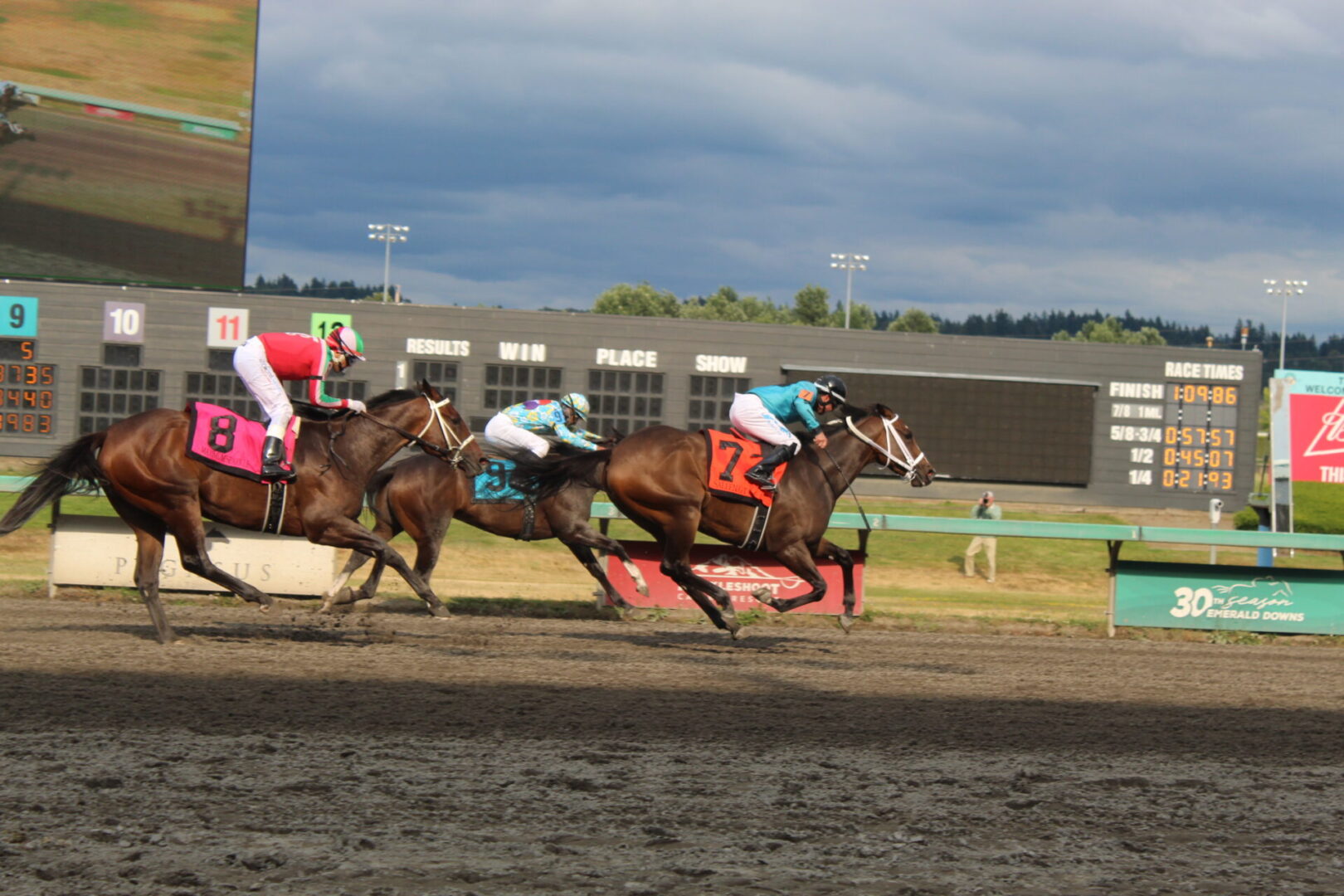 Julien Couton is a former riding Champion at Emerald Downs but seems to be getting caught up in a numbers game with so many solid riders and the expanded number of riders. He got just 4 mounts last weekend but his big ride was replacing Jose Zunino on Slew’s Tiz Whiz and he blistered a good field. Slew’s Racing Crew have to be happy how Couton was able to step in immediately and find that magic with Slew.