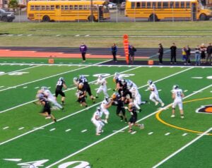 QB Easton Singleton was 2-2 for 44 yards. We also need to make an apology to Easton as we ended up with an incorrect last name referring to him as Easton Eagleton. Easton we whole heartedly apologize and with the name sounding similar we didn’t pick up the correct pronunciation from the P-A announcer while we were on the air.