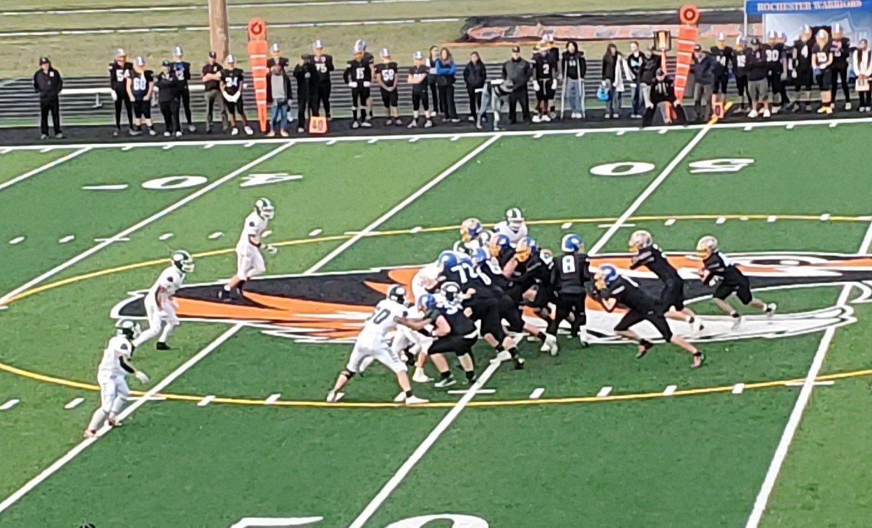 Leading the offense for Rochester was Ethan Rodriguez with 26 carries for 219 yards and 3 TD’s. Xander Peterman ran 17 times for 186 yards and 3 scores while Maddox Rodgers had 19 carries for 141 and 2 TD’s.