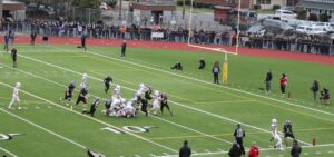 Puyallup went 3 and out likely for the first time all season on their first two drives and were quickly down 14-0. The Vikings came storming back to tie it on an 8 play, 70-yard drive with Briytan Bailey running it in from 6 yards out. The Viks QB Noah Smith on the next drive then found Lawson Looker over the top with a percfect throw for 63 yards and early in the 2nd it was tied 14-14. The two would connect again late in the game with a 17 yard strike pulling the Viks within 7 with just 17 seconds to play in the game. The onside kick was not successful and Sumner kneed it to send them back to Husky Stadium for a chance to defend their Championship.