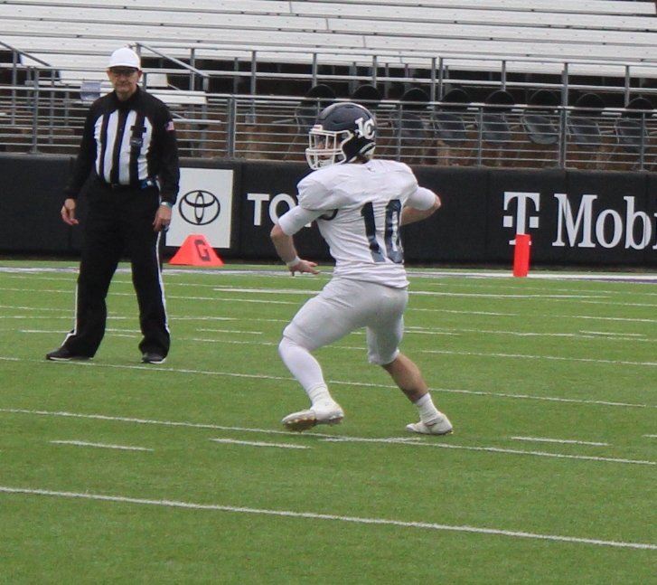 To begin the third quarter, Liberty Christian had the ball first, but the Irish forced a turnover, as Jason Guest got an interception on fourth down. DeSales turned it over on downs on the next drive. DeSales would get another interception, as Maddox Filan got the pick and ran it back with the help of a facemask against Liberty Christian to give the Irish the ball at the 19-yard line. DeSales would go with Caleb Bingham on the ground from the two-yard line. Bingham powered into the end zone to give DeSales their first lead of the game at 18-14, with 1:47 to go in the third quarter. Liberty Christian, on the ensuing drive, snapped the ball with 12 seconds left and ran it up the middle. Three DeSales defenders were surrounding the ball carrier and poked it free. Alan Campos-Ontiveros hopped on the loose ball for DeSales, and the Irish took over at their own 41-yard line with one second left in the third. DeSales would take an 18-14 lead after three quarters of play.