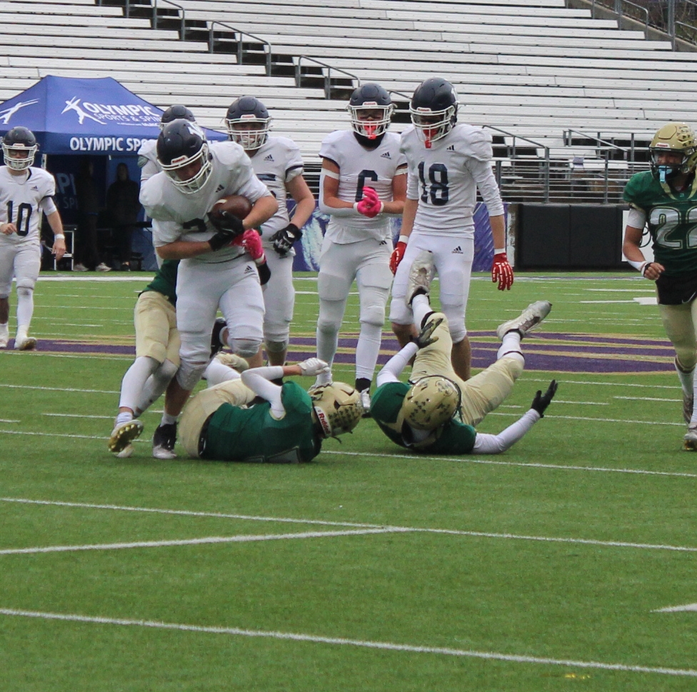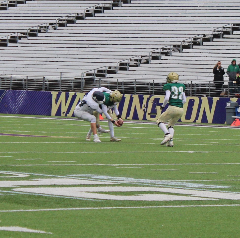 (Seattle, WA) DeSales and Liberty Christian played each other in the regular season, one of three rematches during the State Championships. It was a 36-28 win for the Irish on their home turf on October 24. Liberty Christian was looking for revenge after losing last year in the State Championship Game to Wilbur-Creston-Keller, 42-34. With the wind howling and the first title game of the weekend, the two sides balled it out for the championship.