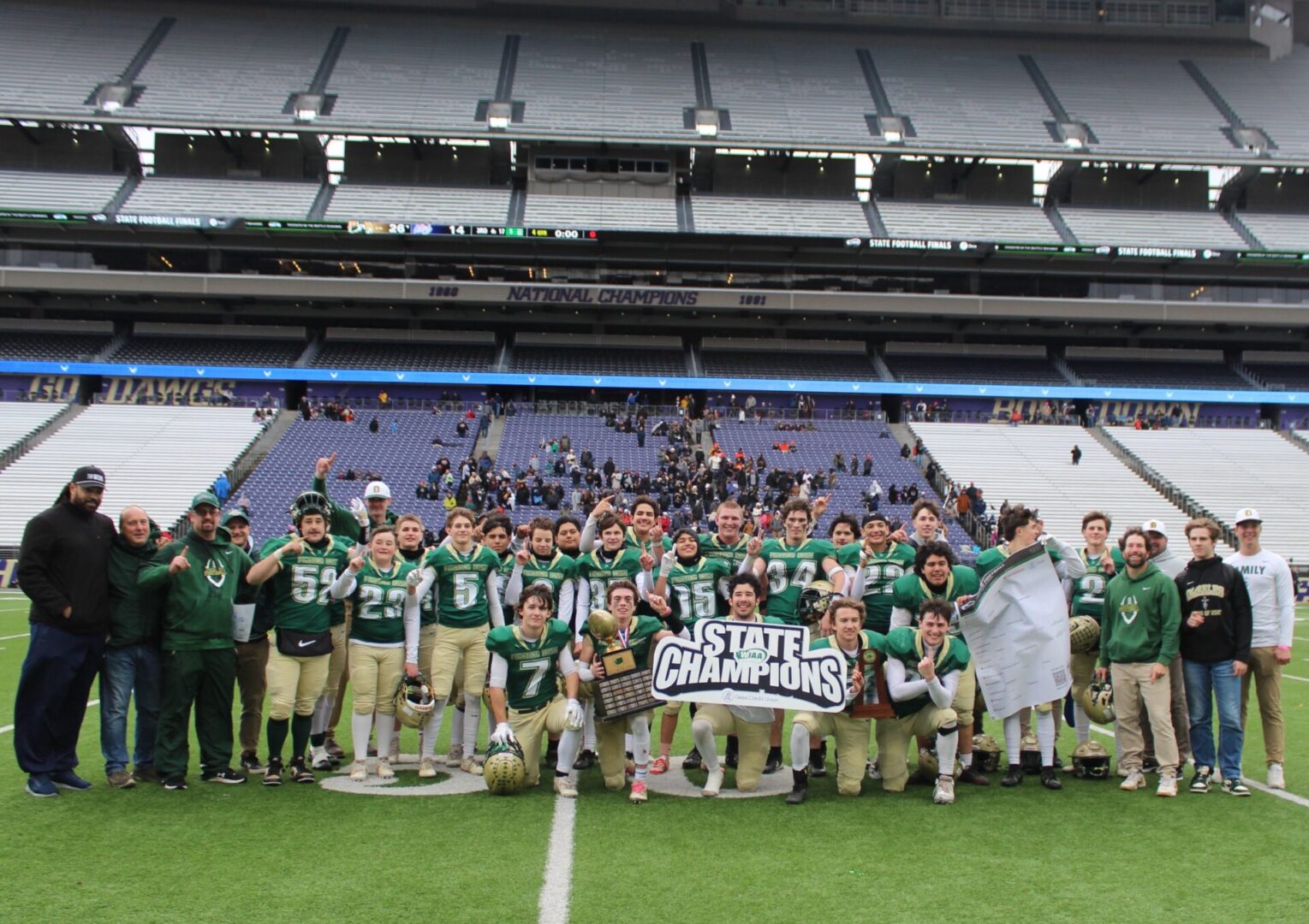 Liberty Christian’s defense made a stand, as the Patriots caused a turnover on downs to take over at the 40-yard line. Liberty Christian moved the ball into DeSales territory, but the Irish forced another fumble. Running up the middle, one of the Irish stuck their arm out, ripped the ball away from the ball carrier, and Santi Santiago jumped on the ball for DeSales to give them possession at the seven-minute mark at their own 14-yard line. The Irish marched down the field and faced third down at the 34-yard line with 2:11 left in regulation. Liberty Christian had only one timeout left, and first down would all but end it. On third and two, Cohen Wood faked a handoff, rolled to his left on a naked bootleg, and scampered down the sideline for a 34-yard touchdown run to put DeSales up 24-14. Bingham converted the two-point conversion to make it 26-14 with two minutes left. Liberty Christian quickly moved the ball down the field, but facing fourth and goal and less than a minute left, the Irish made one last stand to force another turnover on downs and to give them the ball. After two kneel downs, the clock ran out as the DeSales Irish won the 1B State Championship, 26-14.
