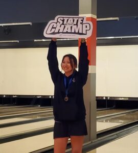 Senior Hailey Wright of RA Long was back in 4th place and was very consistent with a high game of 212 and low game of 155. Wright was a clear 4th and fell 29 pins short of 3rd place.