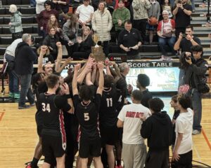 Montesano still wouldn’t give in and Mason Fry hit a huge 3 to pull within 2, 57-55 with 16.5 seconds to play. But again, the Trappers bent but never broke and held on to win their 1st district 4 1A basketball Championship.