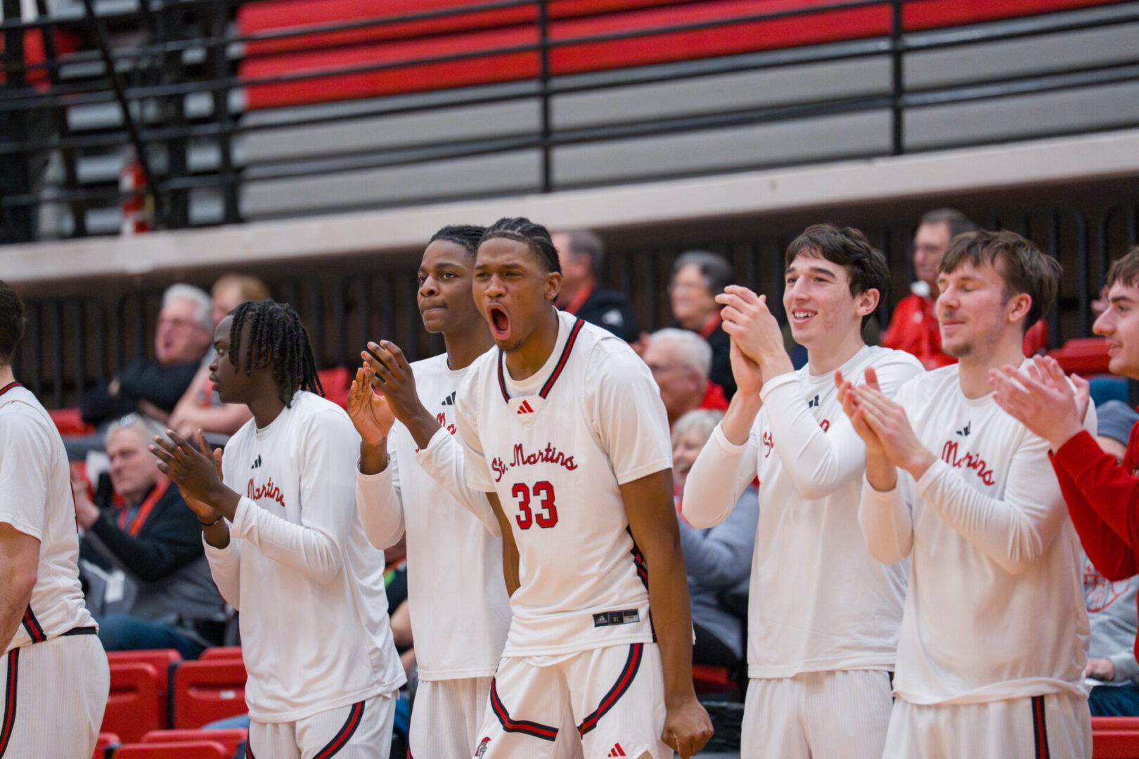 Saint Martin’s was led by Diego Trejo-Delgado, who poured in a game-high 24 points, and pulled down nine rebounds. He nailed three three-pointers and shot 10-16 from the floor. Kaden Hansen had 20 points, including 5-7 from downtown. Patrick Kilfoil had 11 points and five boards. The Saints shot 55% from the floor and 60% from three-point land in the second half. Saint Martin’s controlled the paint offensively, outscoring Alaska 34-18.
