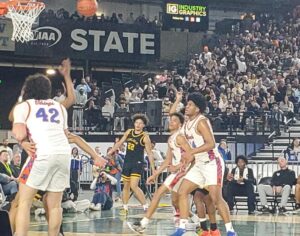 O’Dea was led by Brian Webster with 29 points with a pair of long balls and 7 of 8 from the line along with 6 boards, 2 assists and 2 steals. Peyton Brooks added 11, Josiah Bowman also in double figures with 10. Gene Woodard III led the Irish in rebounding with 9. O’Dea is now 19-4 and will head to the quarterfinals where top-seeded Rainier Beach awaits them as the loss in regionals by O’Dea flipped the bracket and the game many thought would be for the State Title is now a quarterfinal match-up. Tip-off will be 10:30 Thursday morning.