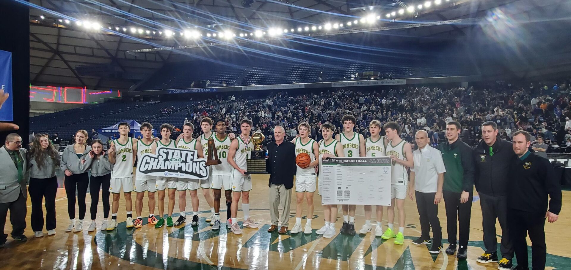 The Bombers now 25-0, were led in scoring by Landen Northrop with 33 and picked off 7 rebounds. Lance Hornvedt had a big night with 20 points and 6 boards and 3 assists with Jackson Woodard kicking in 10 points. Richland will take on the 3 seed Lake Washington Friday in the Semifinal nightcap at 9pm.