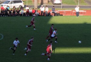 (Chehalis, WA) The Centralia Tigers were a PK kick in the 5th round of the shoot-out from taking complete control of the EVCO 2A league with 3 matches to go in the regular season. Instead, the WF West Bearcats and crosstown rivals pulled off a stunning comeback win to create a literal coin toss finish in the final 3 matches.