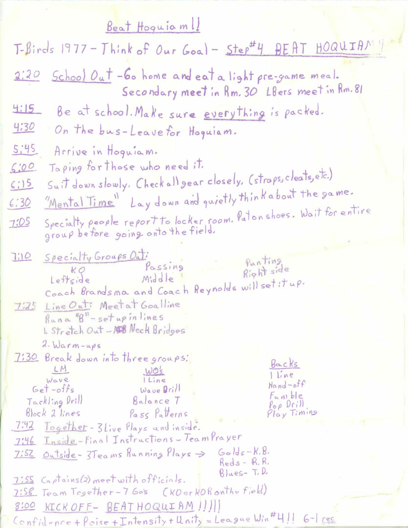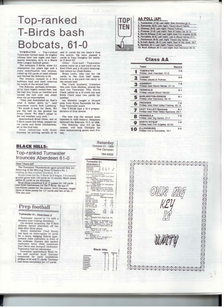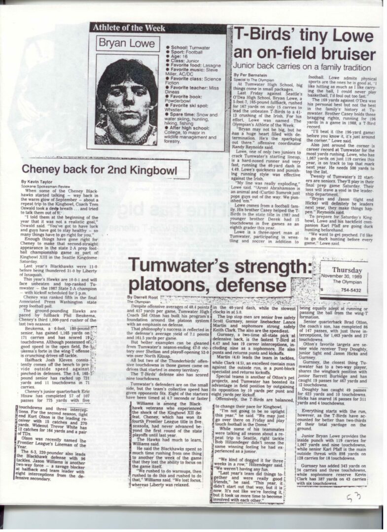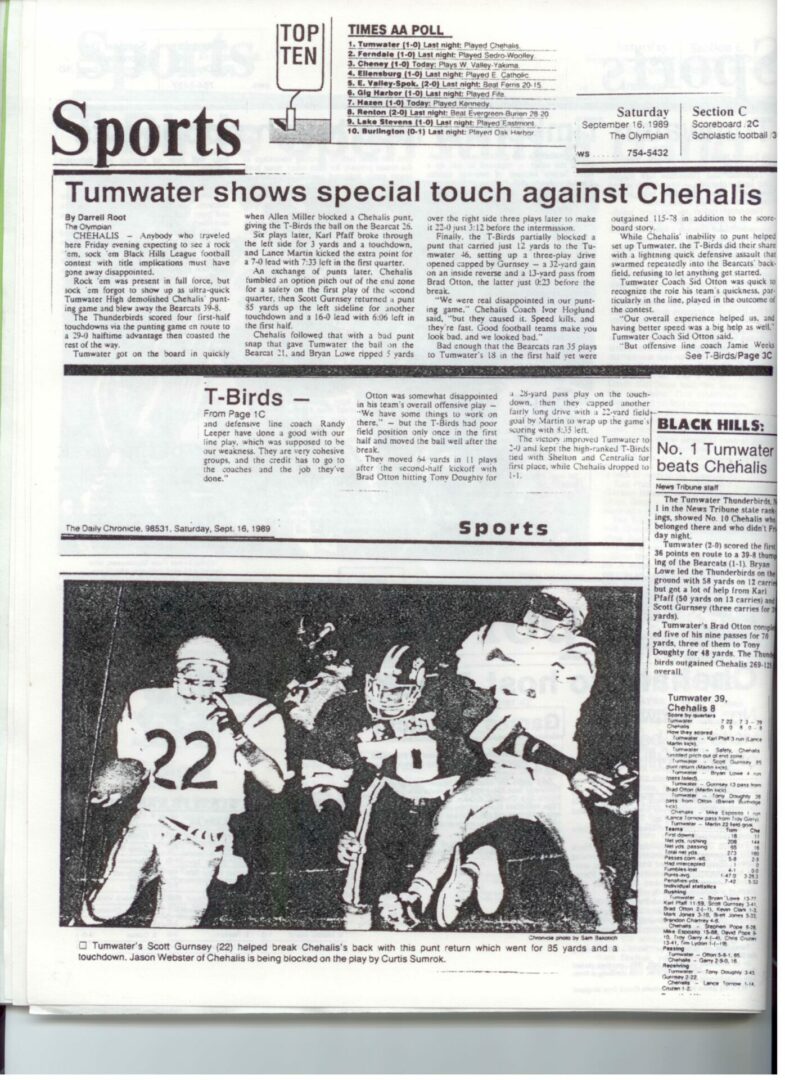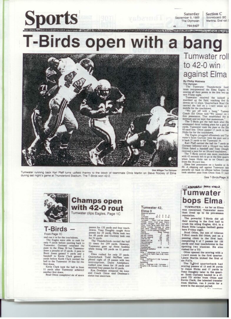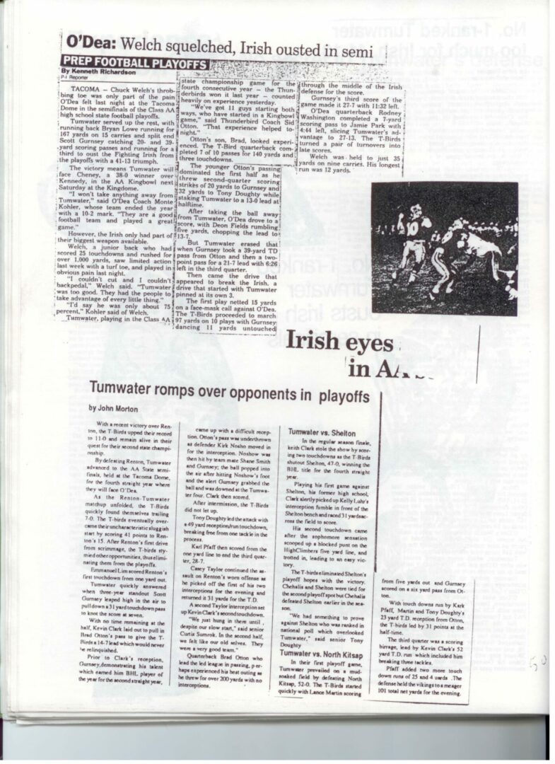 We wrote this to chronicle the amazing journey Coach Otton went on from his early days winning his first State Title in Colfax to starting his career in Tumwater with a 7-20 record and wondering if their would be a 4th season. Now days, highly unlikely. This was one of the reasons we wanted to write this as it took Coach Otton 13 years to win his 1st title as a T-Bird. But the program and culture he created is undeniable and could only have done it with adminsitrative support that refused to give-in to agrieved parents calling for his firing in the early days.