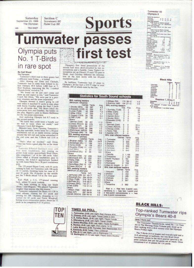 Part 8: Tumwater Winning Football; The Sid Otton Legacy “One more before the Split”